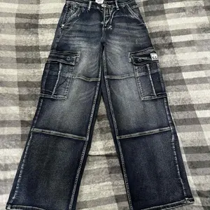 DETAILS - Pro Club denim patch above right rear pocket at waist, woven label at wearers left cargo pocket and a heavyweight metal button.