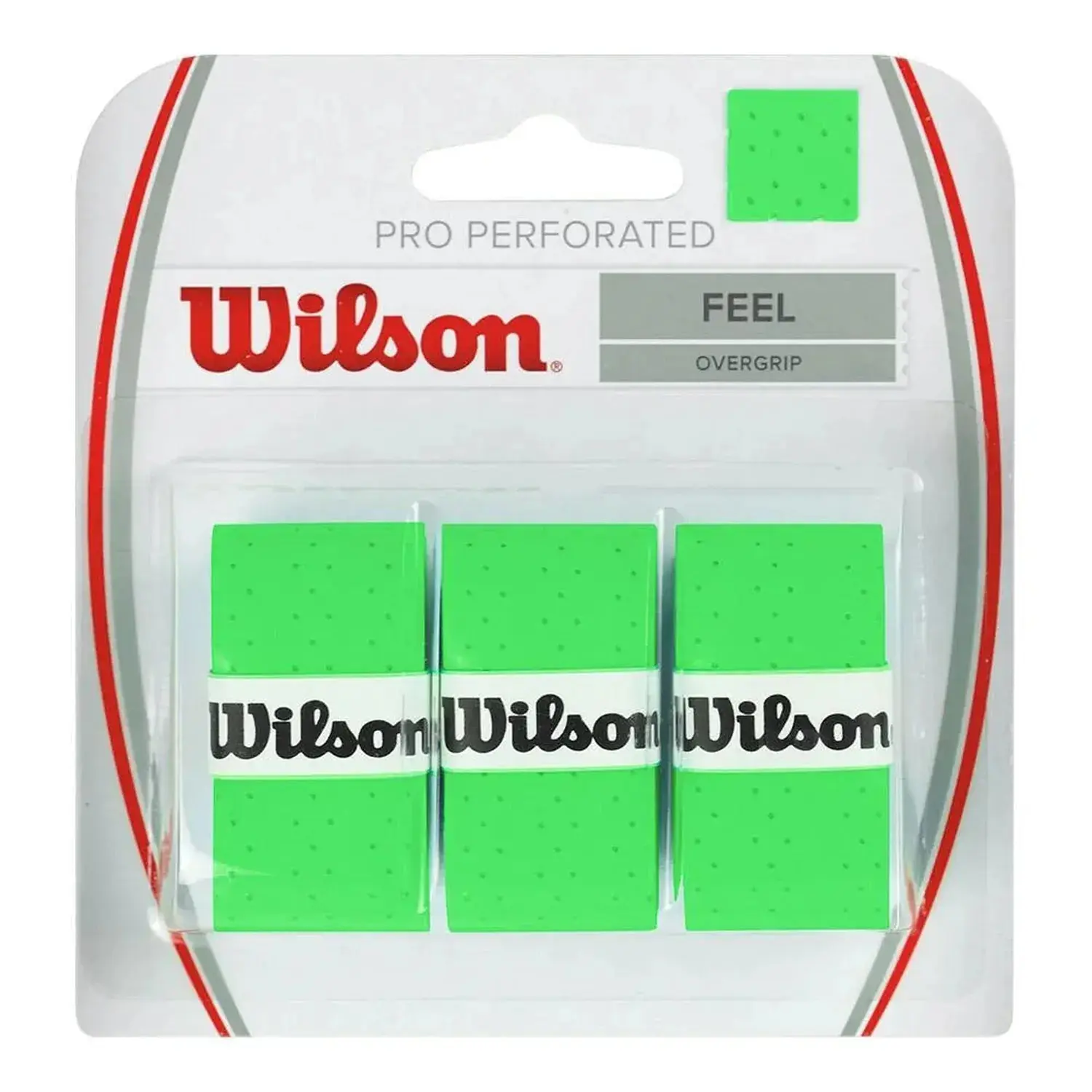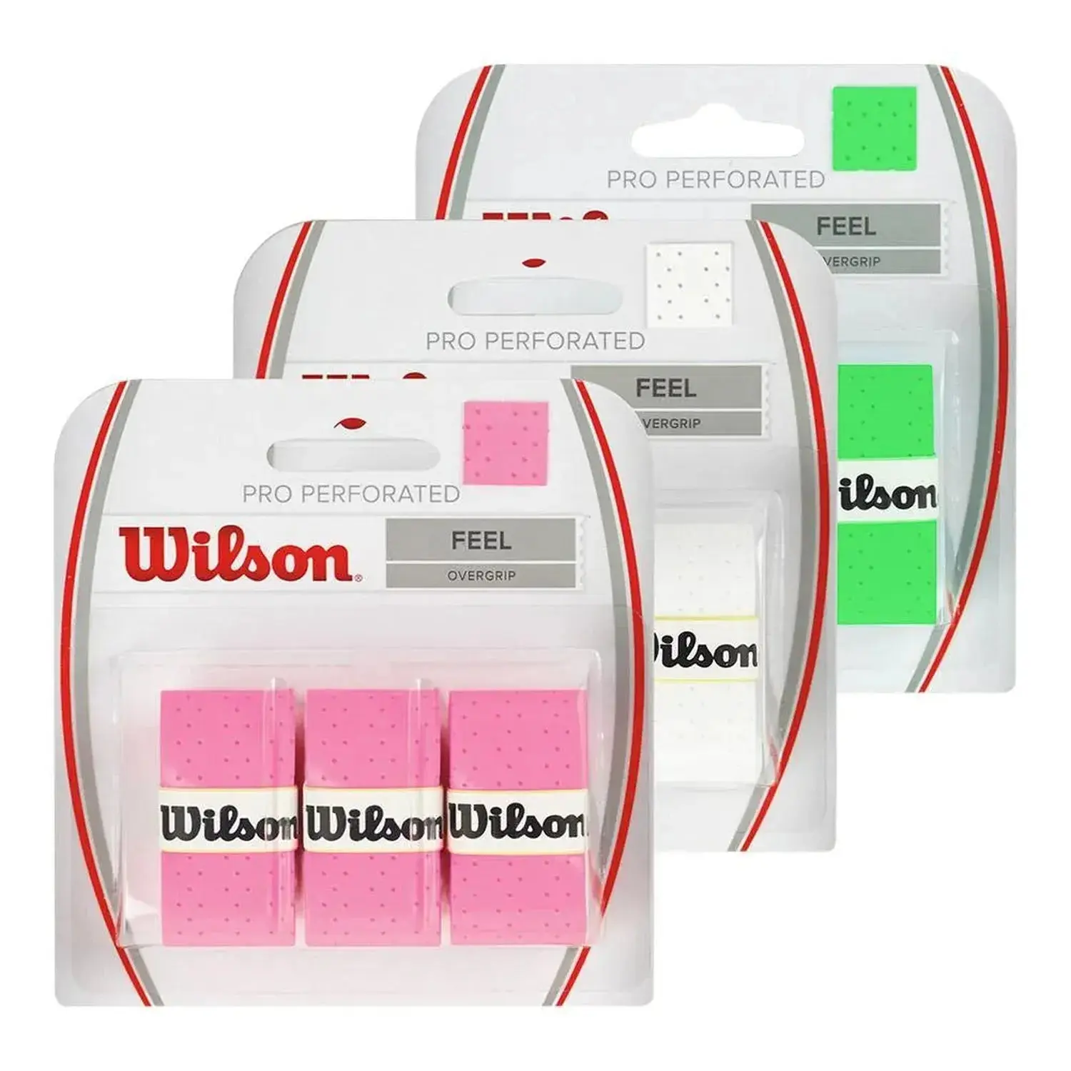 Wilson's best selling overgrip is now available with perforation for added feel in the Wilson Pro Overgrips Perforated 3 Pack. These overgrips are made of super thin, high-stretch felt for optimal feel. Used by Wilson touring pros, including Roger Federer and Serena Williams.