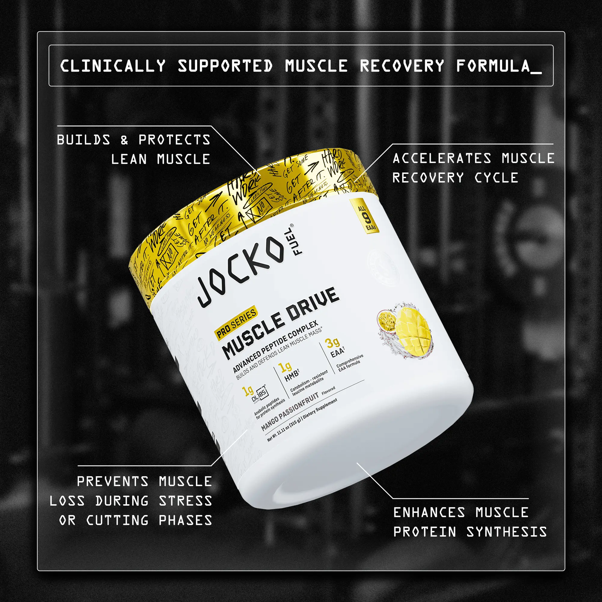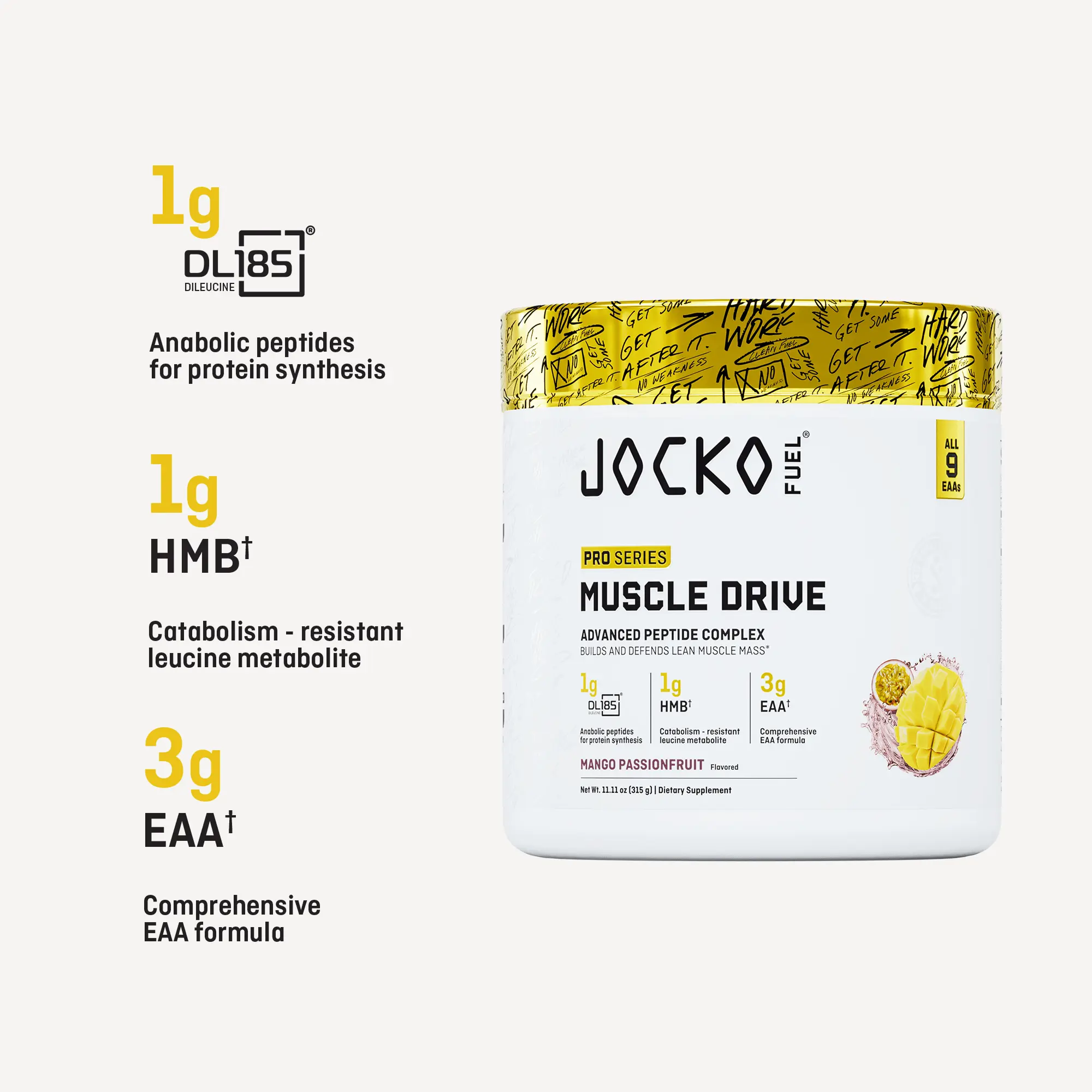 Muscle isn’t just built—it’s protected. This is the first science-backed formula to do both. Powered by di-leucine to spike muscle growth, HMB to block muscle breakdown, and full-spectrum EAAs to support rapid recovery, Muscle Drive is a system designed to help you grow, preserve, and perform.