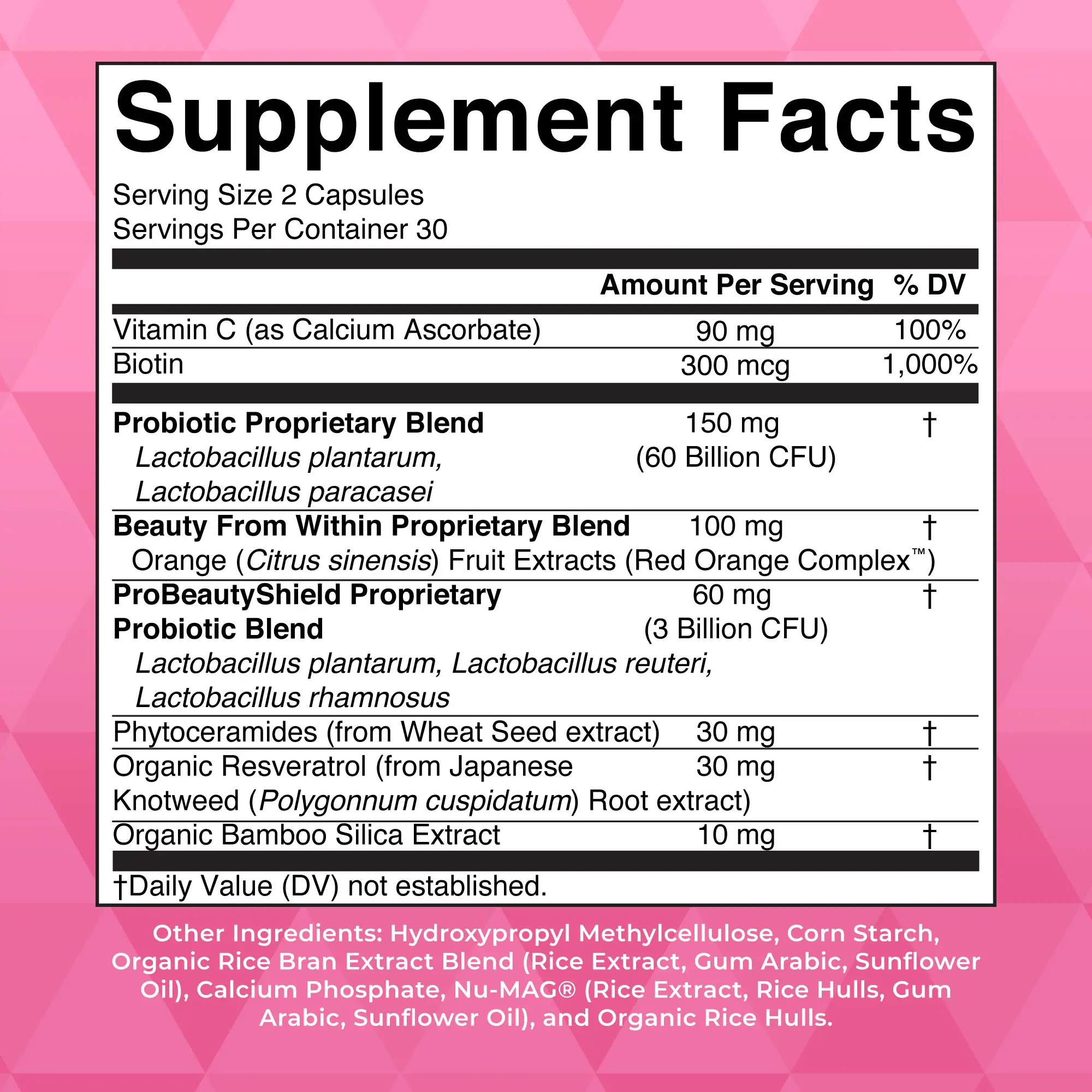 Beauty From Within: This unique formulation is designed to help give your beauty a daily boost from the inside out. Not only do these vegan capsules contain probiotics to introduce healthy bacteria and receive components to support a healthy gut microbiome, but they also contain ingredients for your beauty.