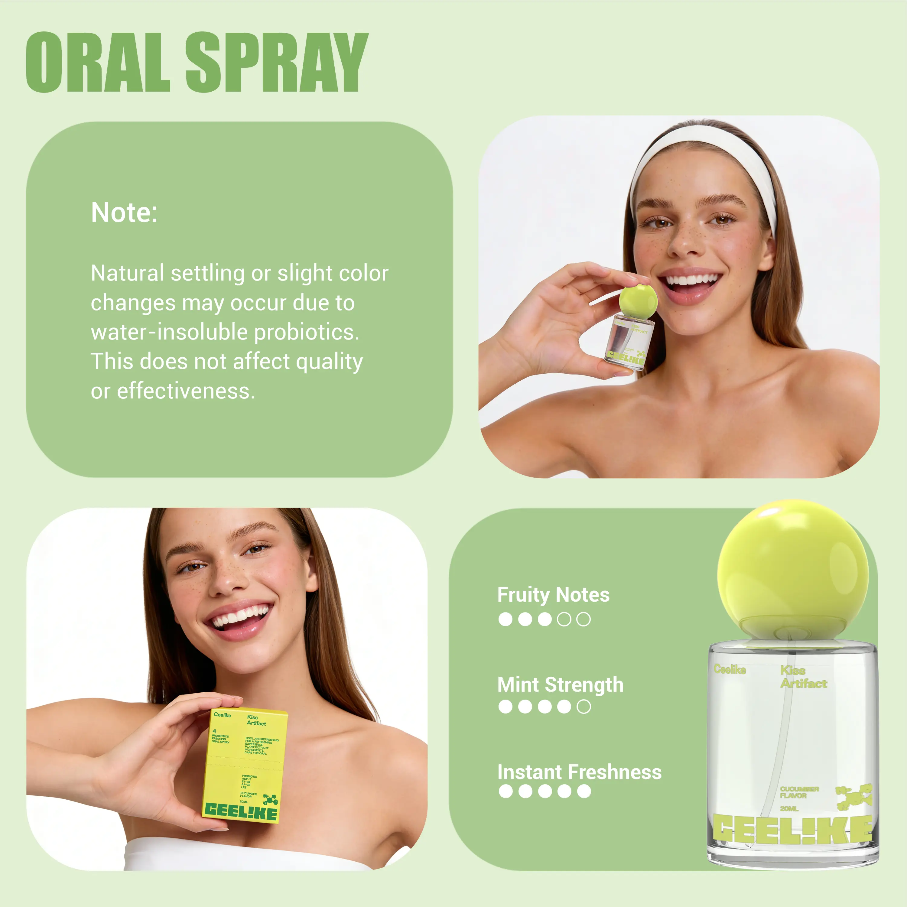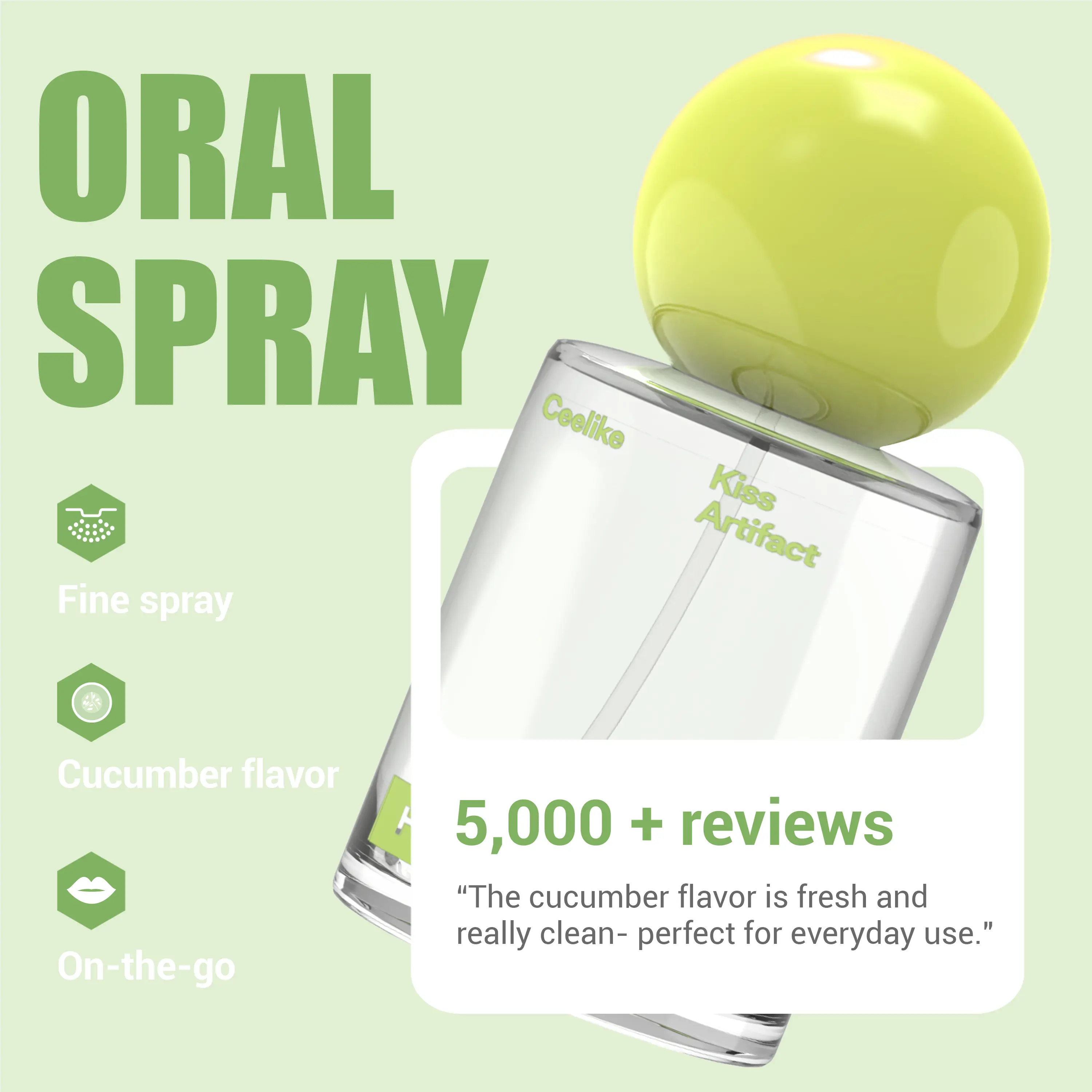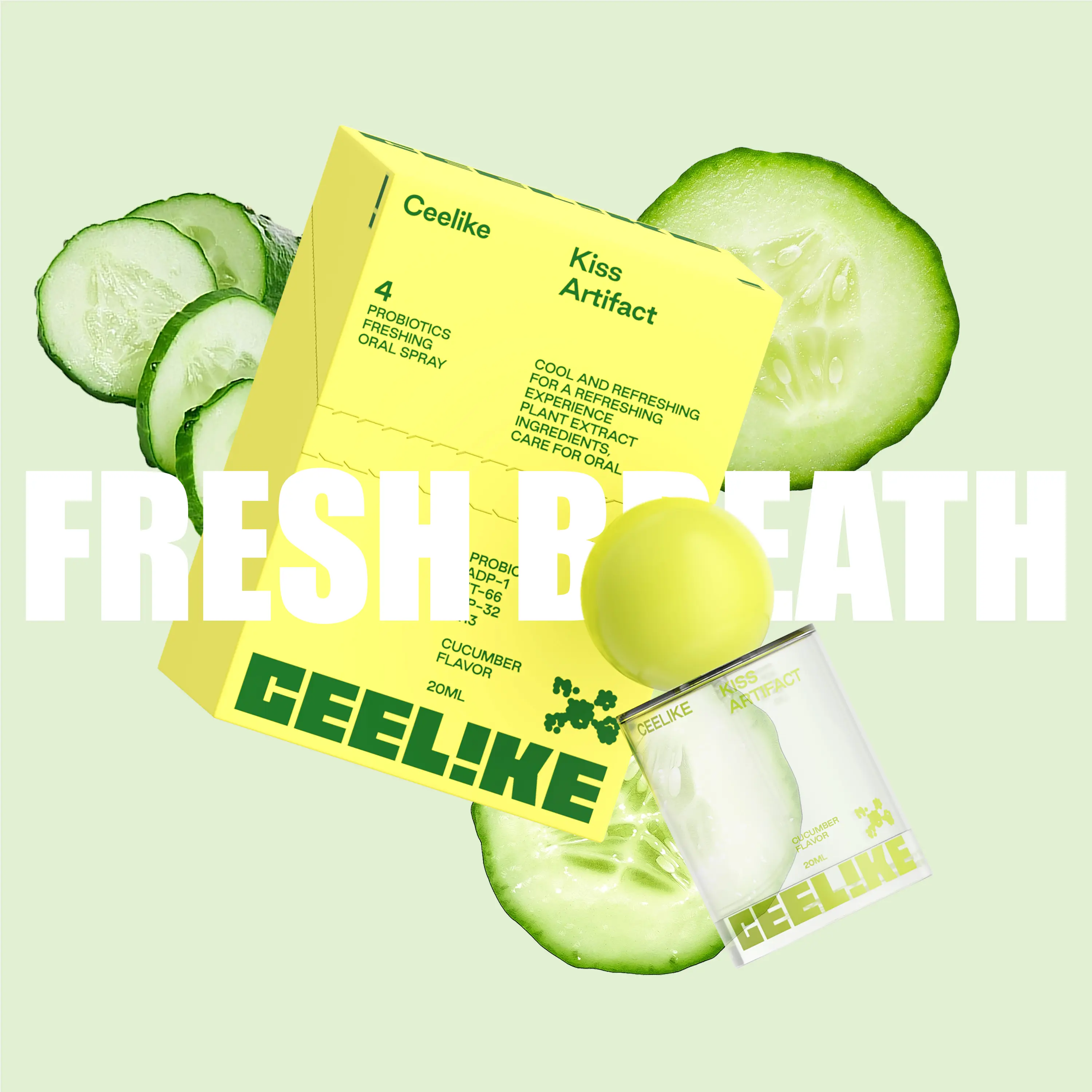 CEELIKE Probiotic Cucumber Oral Spray 20ml for Long-Lasting Freshness Sugar-Free Portable Breath Freshener with Probiotics for Oral Care