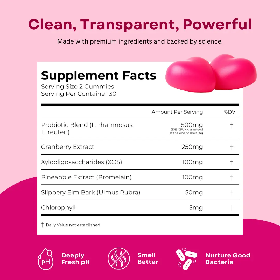 ·Freshens Naturally: Infused with chlorophyll and a probiotic blend, these gummies help combat odor and support feminine freshness from within.