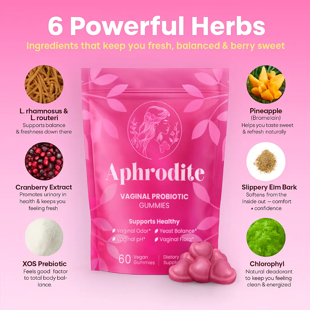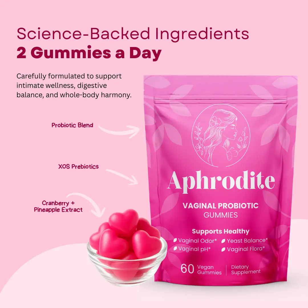 Aphrodite Probiotic Gummies are your daily go-to for wellness, crafted to support your overall balance and help you feel amazing inside and out. These delicious gummies contain probiotics and natural ingredients that work together to promote wellness, confidence, and a sense of freshness as part of your daily routine.