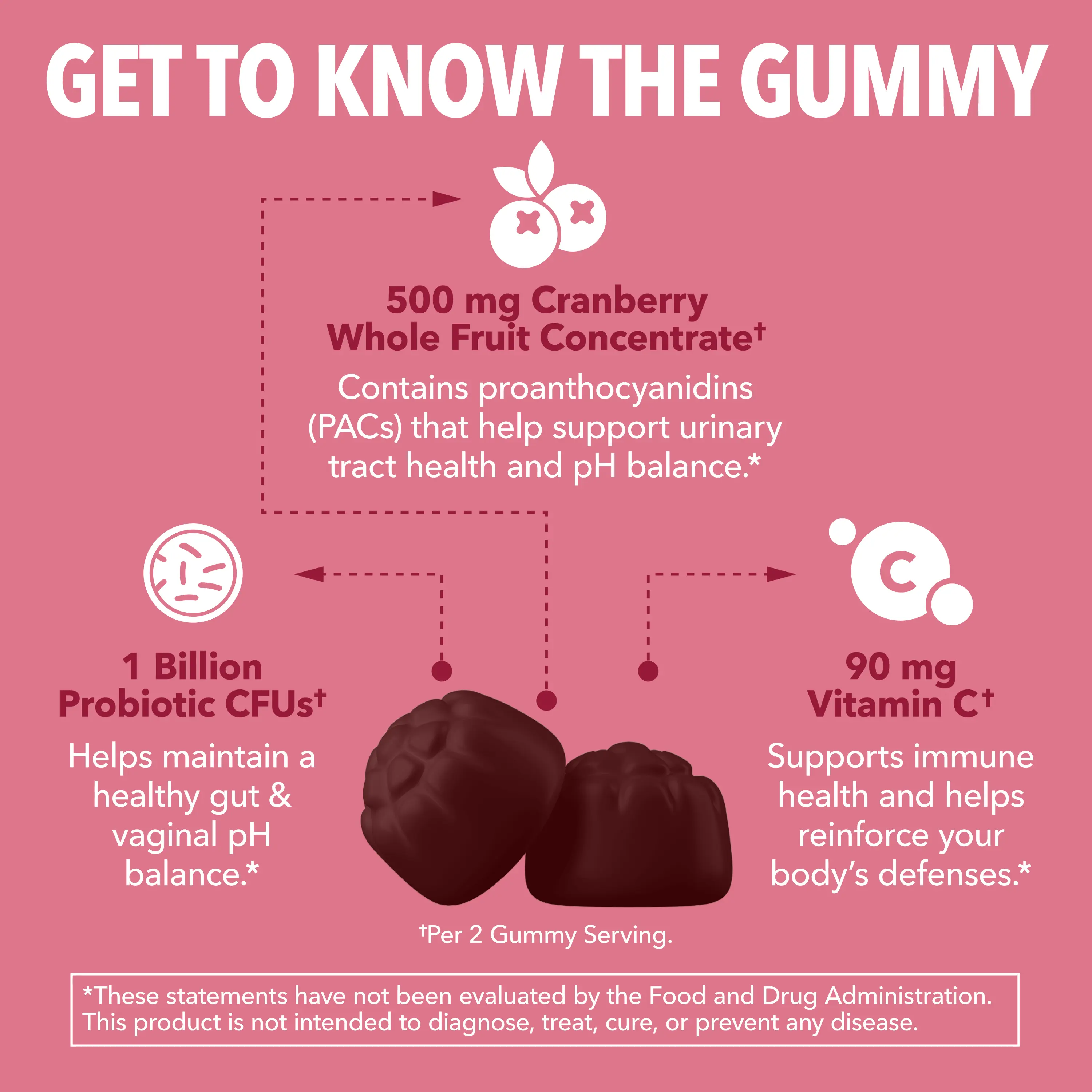 Each bottle of the Cranberry Probiotic Gummies is packed and loaded with billions of probiotics for women.