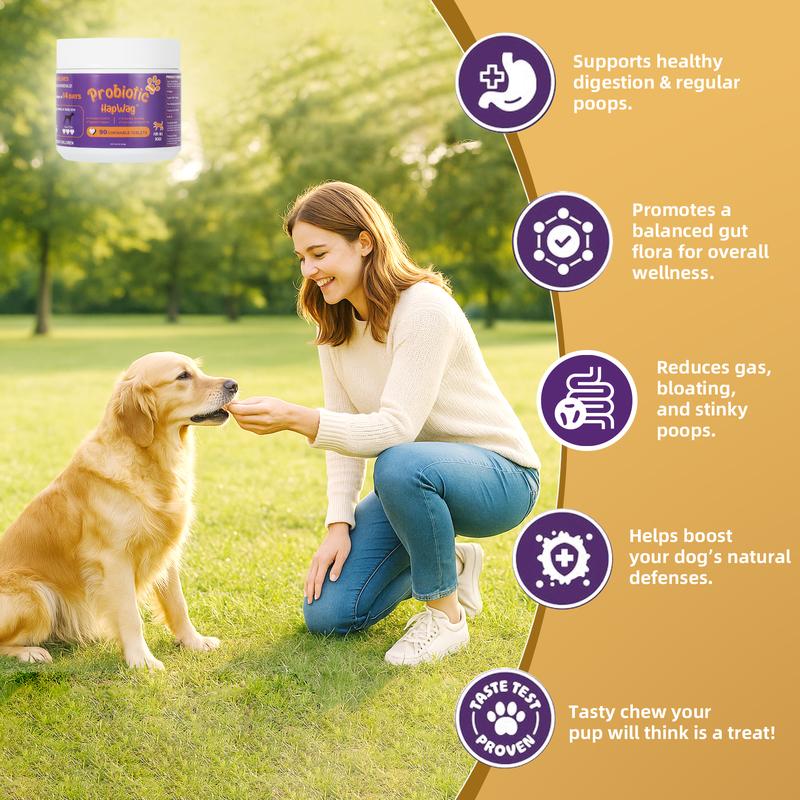 Firmer stools,balanced flora, and wag-worthy wellness! Probiotic HapWag brings harmony in every chew. When the belly's at peace, the world feels a little more playful.