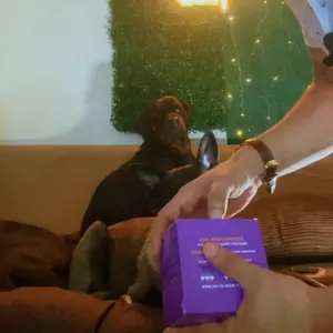It arrived so excited too see some changes on my frenchie she’s always licking her paws or scratching
