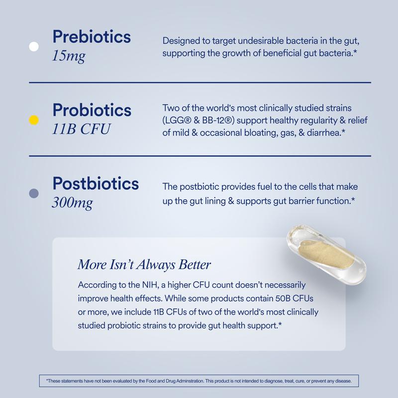 Take one capsule daily with or without food for optimal gut health support.