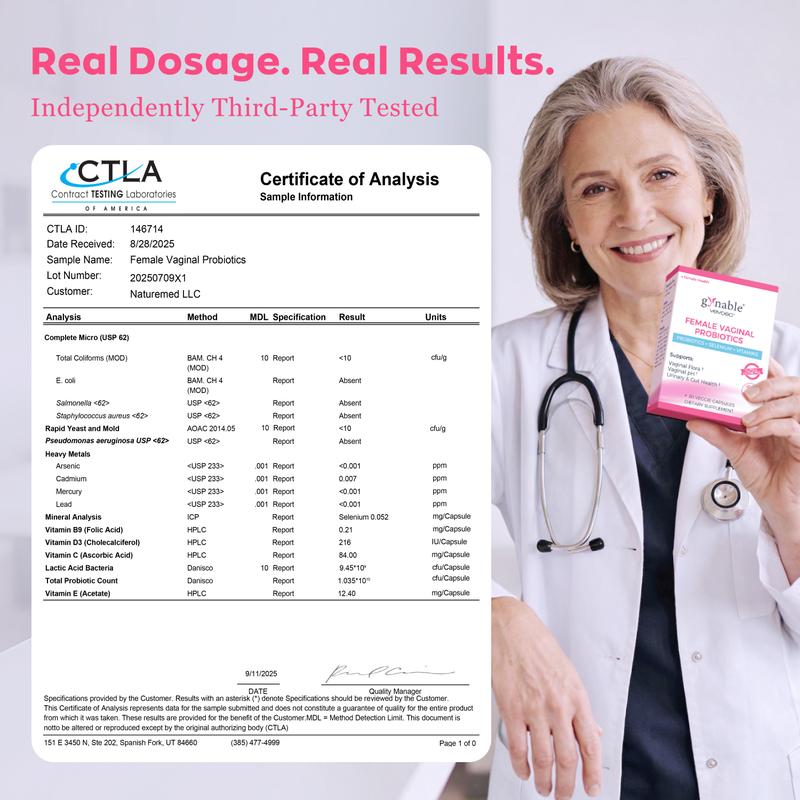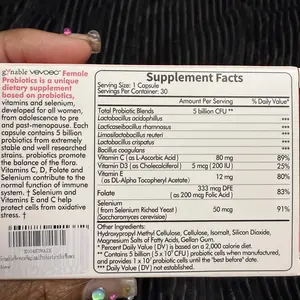 ·Gynable Female Probiotic is produced in a factory that has obtained EU GMP certification and completed FDA registration, strictly adhering to the ISO9001 quality management system. Formulated with strains recommended by the European Urology Association (EUA) and vitamins and selenium.