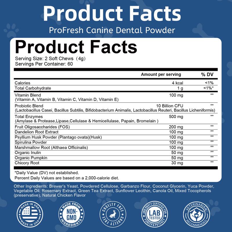 Designed to cater to the needs of all dogs—regardless of age, size, or appetite. Whether you have a playful puppy or a wise senior dog, these probiotic chews: