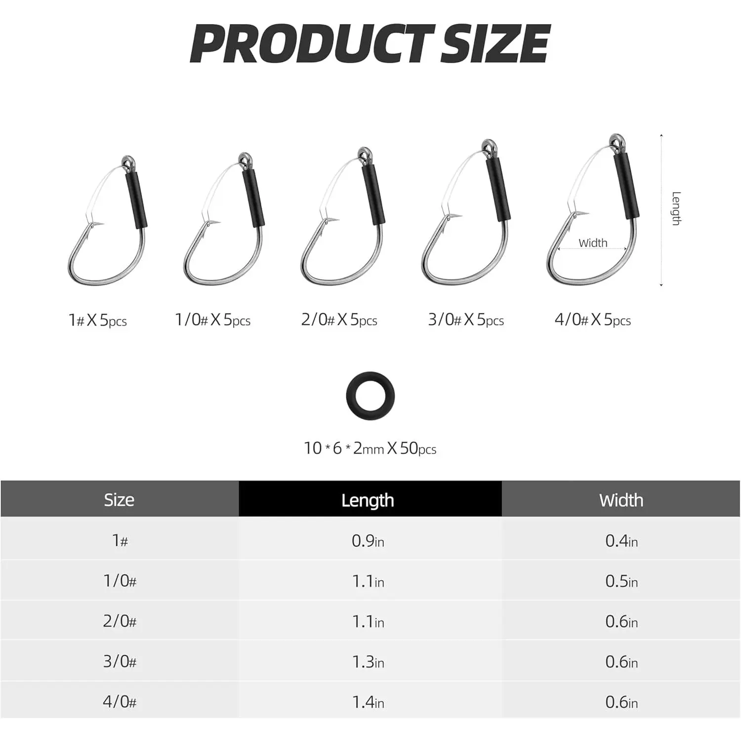 ·Versatile Pack with Multiple Sizes Included – This set includes 35 premium hooks for each size # 1, # 1/0, # 2/0, # 3/0, and # 4/0, plus a 25PCS mixed-size pack and 50 Wacky O-Rings. Perfect for customizing your tackle box and rigging a variety of soft baits such as Senkos, Trick Worms, and other finesse rigs. Ideal for bass fishing on lakes and rivers across the U.S