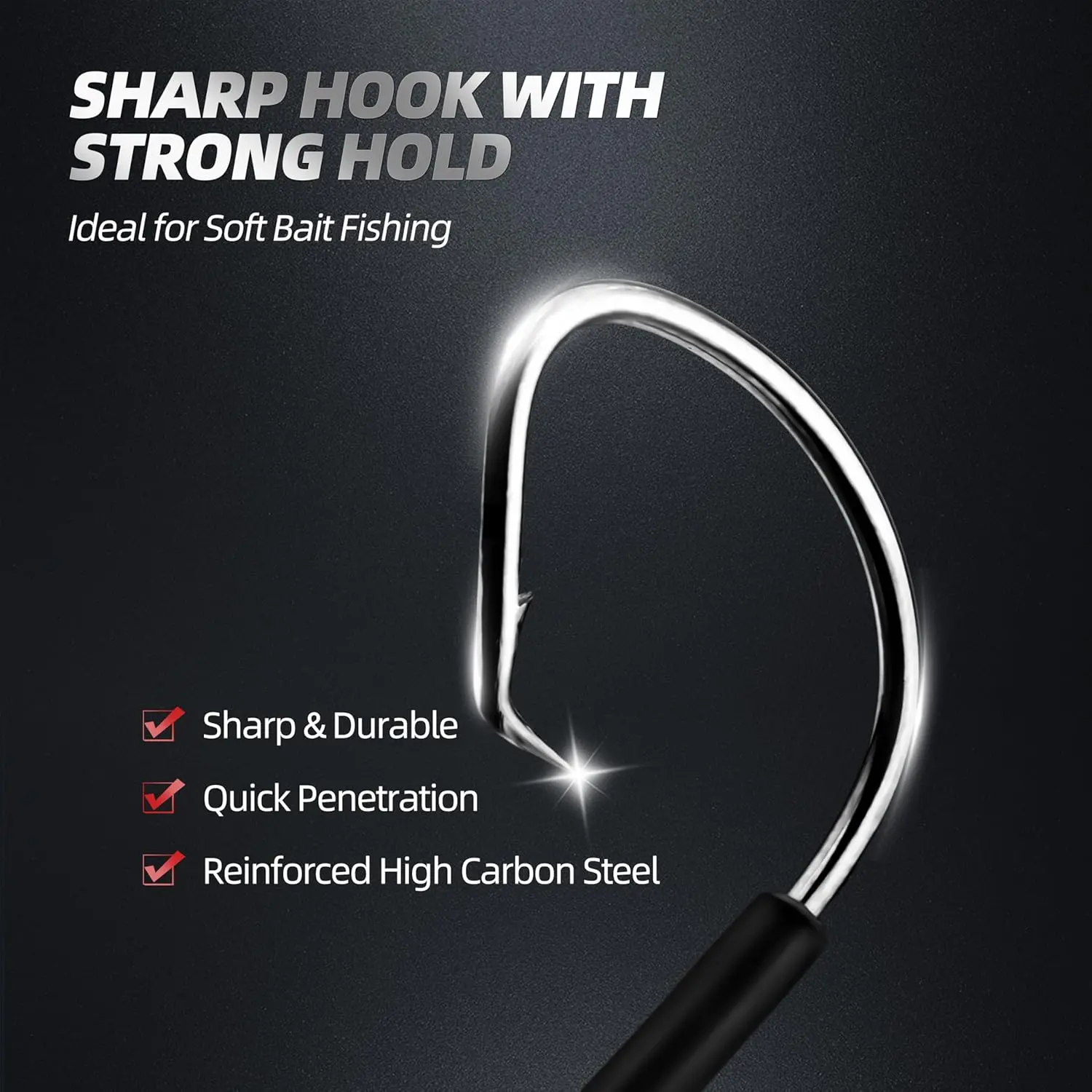 ·Optimal Hookset with Wide Gap Design – The wider gap boosts your hookup ratio, while the turned-in point ensures that once that bass hits, it stays on.These wacky rig hooks are forged for strength and crafted for precision, giving you control in both finesse and power fishing techniques