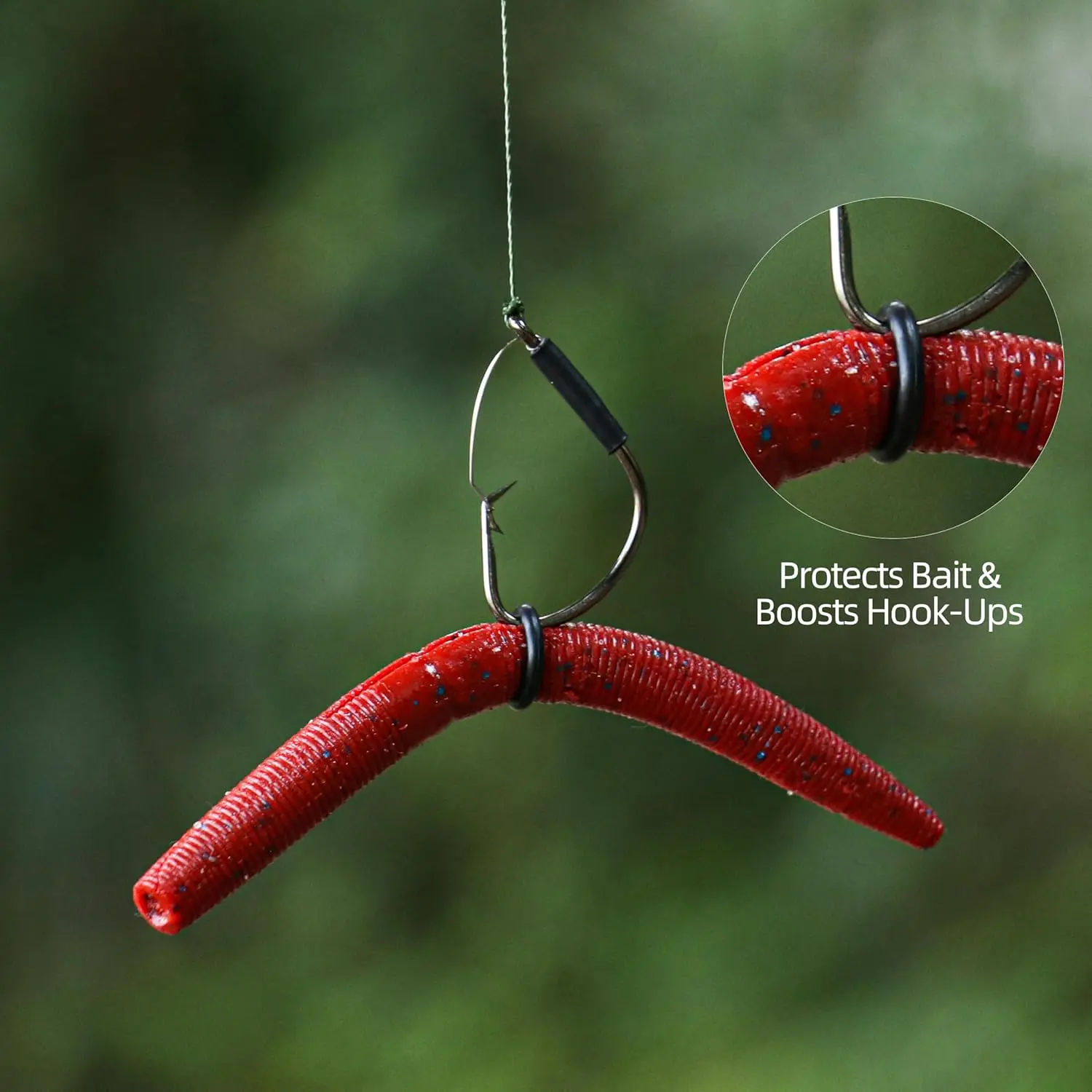 ·Smart Anti-Snag Technology – Equipped with a steel wire guard that smartly detaches during a strike, our hooks offer the perfect balance between snag resistance and hook efficiency.Say goodbye to missed bites-your worm or wacky rig o ring stays in play while fish are locked in