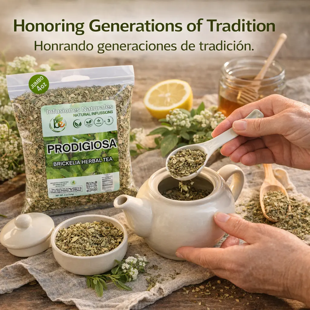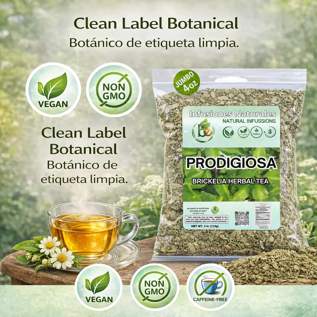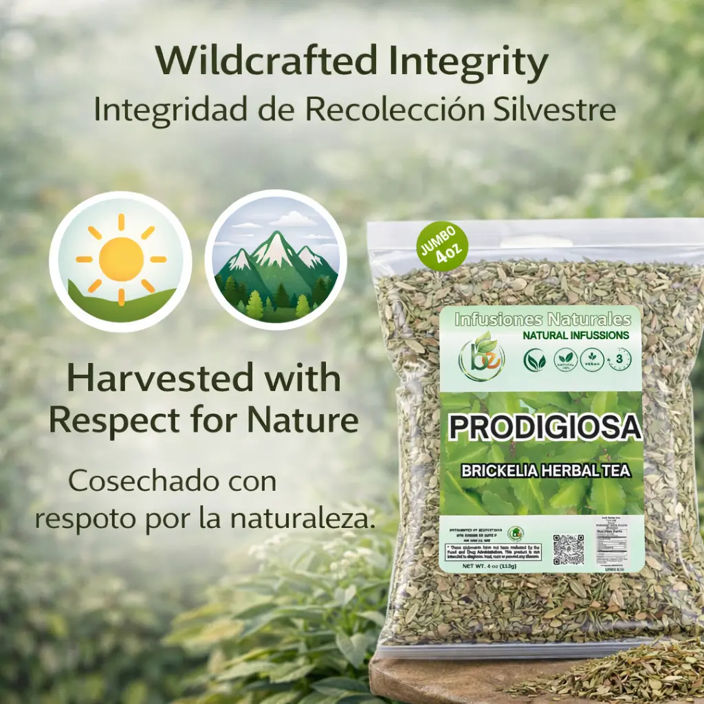 Embrace the essence of nature with our Prodigiosa Herbal Tea! This 4 oz (113g) blend showcases 100% natural Mexican herbs, focusing on Wildcrafted Brickellia. Each leaf is chosen for its authentic taste and health benefits. Perfect for those who value vegan and non-GMO options.