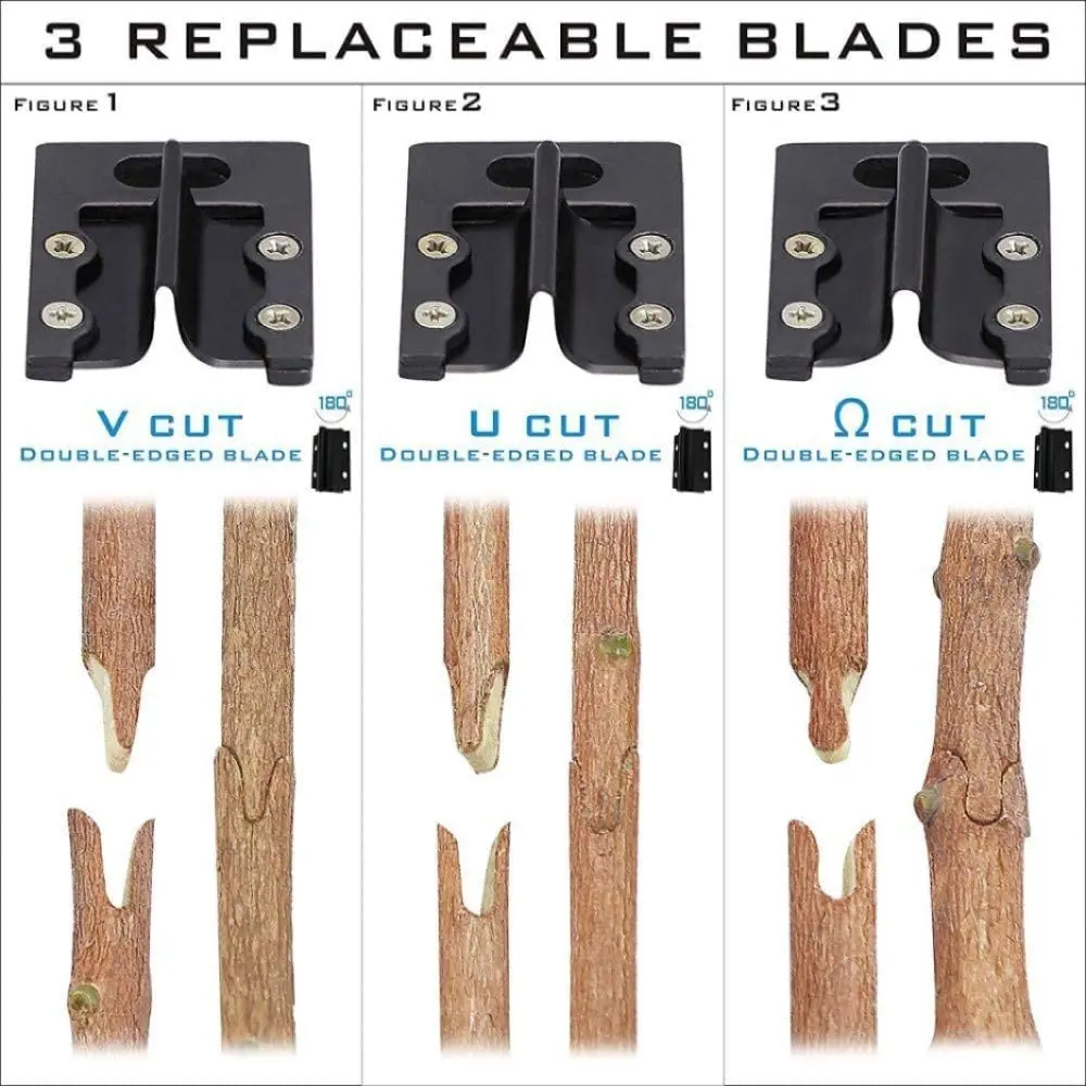 ·Professional Grafting Tool: This gardening grafting tool kit includes 2 in 1 grafting pruning tool and 3 replaceable blades. The 3 replaceable graft cutting blades (Ω-Cut & U-Cut & V-Cut) for cutting fruit branches with diameters from 5 mm to 12 mm. Precise and perfect cutting improves survival rate.