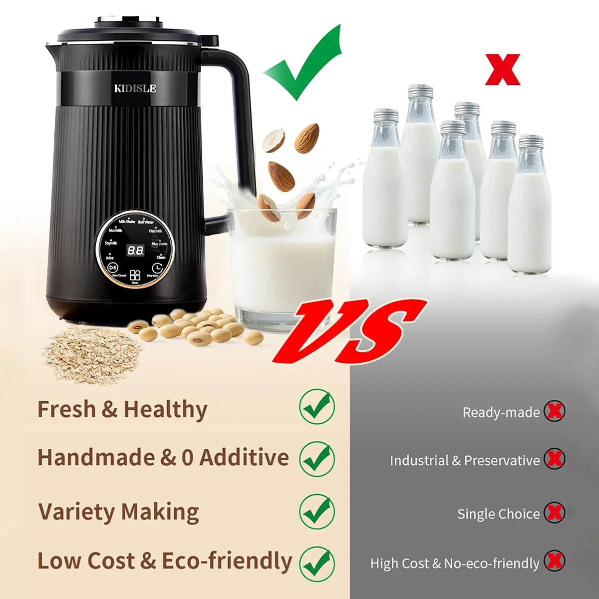Easy to Use- Digital Touch Control: Simplifies the process of blending nuts and grains for smooth, rich, and creamy milk.- One-Touch Start: Prepares homemade plant-based milk in minutes.
