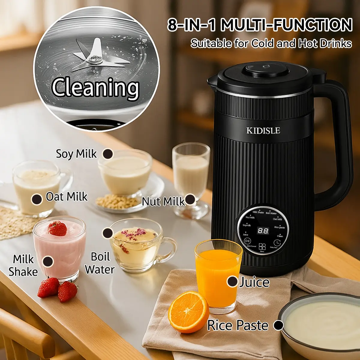 Automatic Heat Preservation- 2 Hours of Automatic Heat Preservation: Supports Soymilk, Boiled Water, Rice Paste, and Clean programs.
