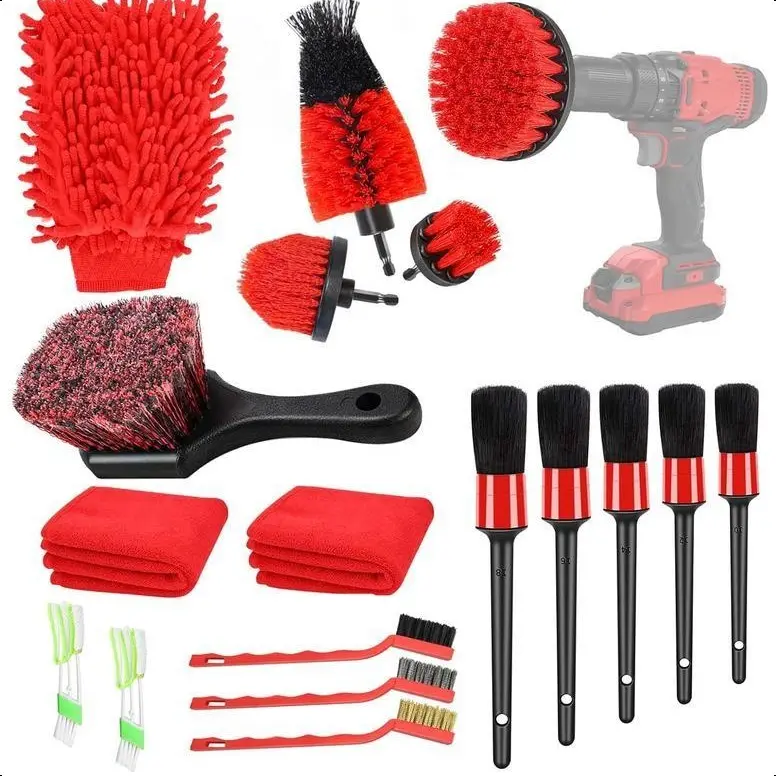 Professional Car Detailing Kit, Multifunctional CarCleaning Kit with a Variety of High Quality Soft-bristle Detailing Brush Set for Cleaning All CarParts, Interior, Exterior, Wheels and Dashboard