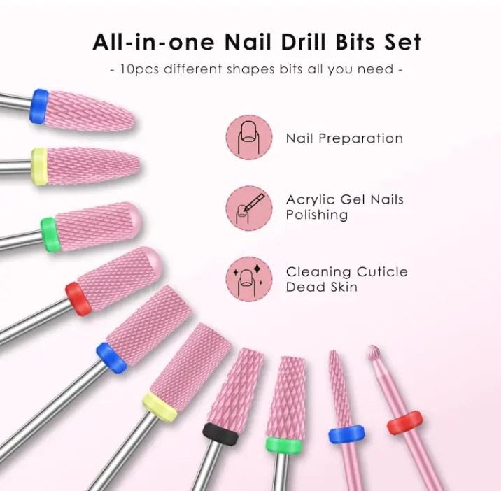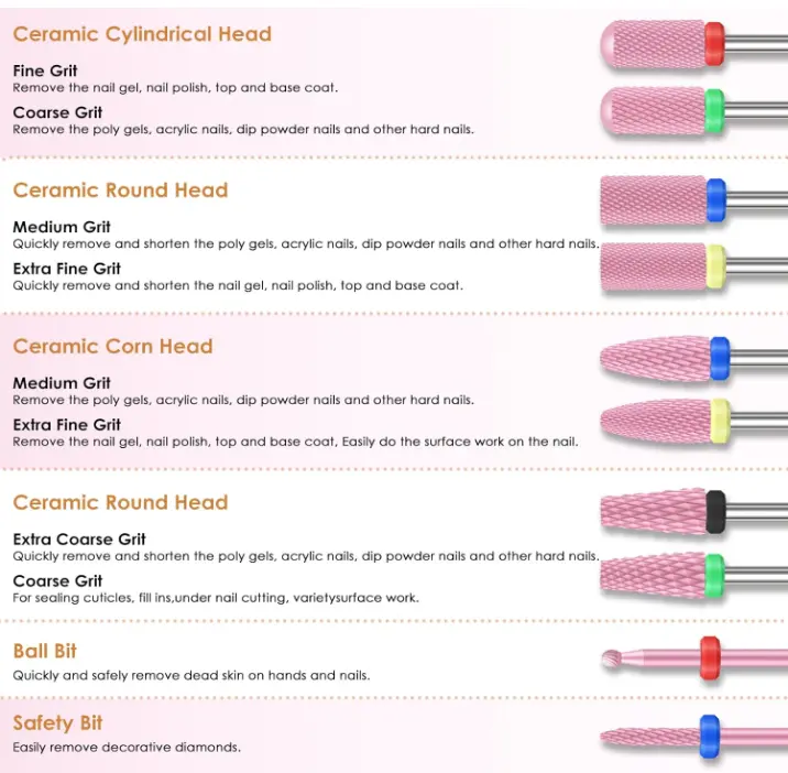 ·【10pcs Ceramic Drill Bits】This nail bits for nail drill include 4-kinds of texture ceramic nail drill bits: Fine, Medium, Coarse, and Special rough grinding patterns. They can adapt to different strengths to accomplish varied professional nail jobs. Suitable for both nail art beginners and professional manicurists