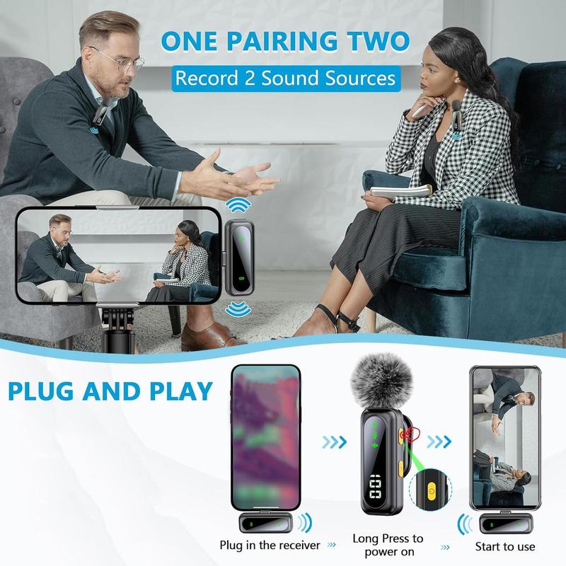 Professional Dual Wireless Clip-on Microphone: Smart Noise Cancelling & Magnetic Clip, Up to14H Battery, Studio Sound for Video Recording, Interview, Podcast, Perfect for TikTok, YouTube, Vlog, Usb Streaming Mic