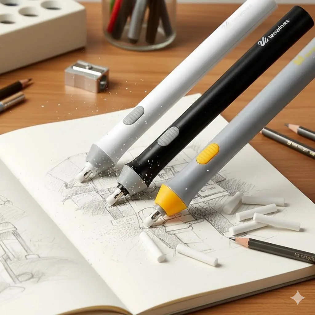 Professional Electric Eraser Kit for Drawing, Replaceable Eraser Tips, Highlight & Detail Tool, Portable Sketch Corrector, Smudge-Proof Design for Precision Artwork, Pencil Draft Perfection.