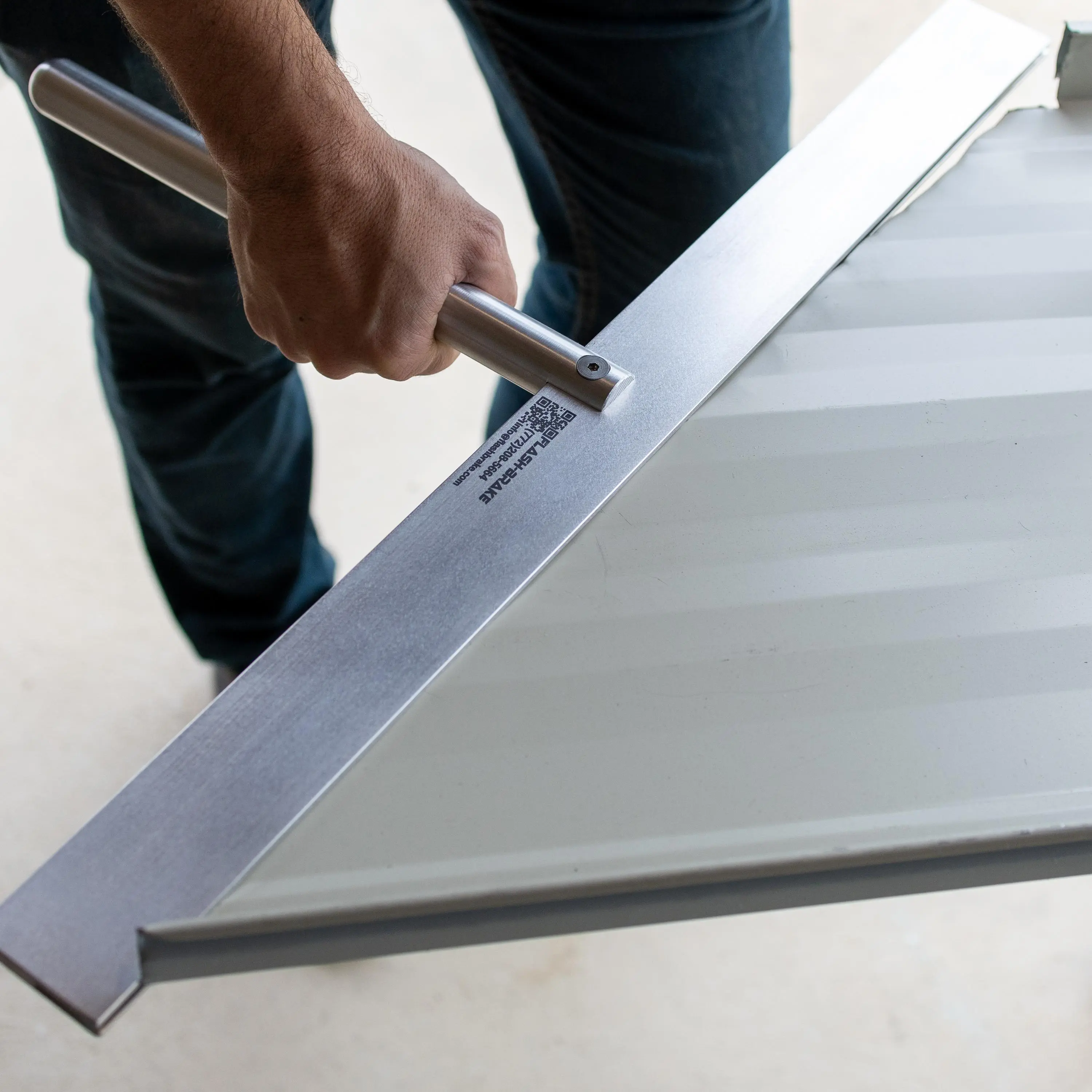 The Flash-Brake edge bending tool is the only tool specially designed for YOUR standing seam roofing project! With a 1 in deep, 1/8in wide slot, it fits more easily over striated standing seam panels. Ideal for bends on smaller commercial panels, residential panels cut at an angle, and valley panels, select a size from 19" to 24" to best fit your project's needs.