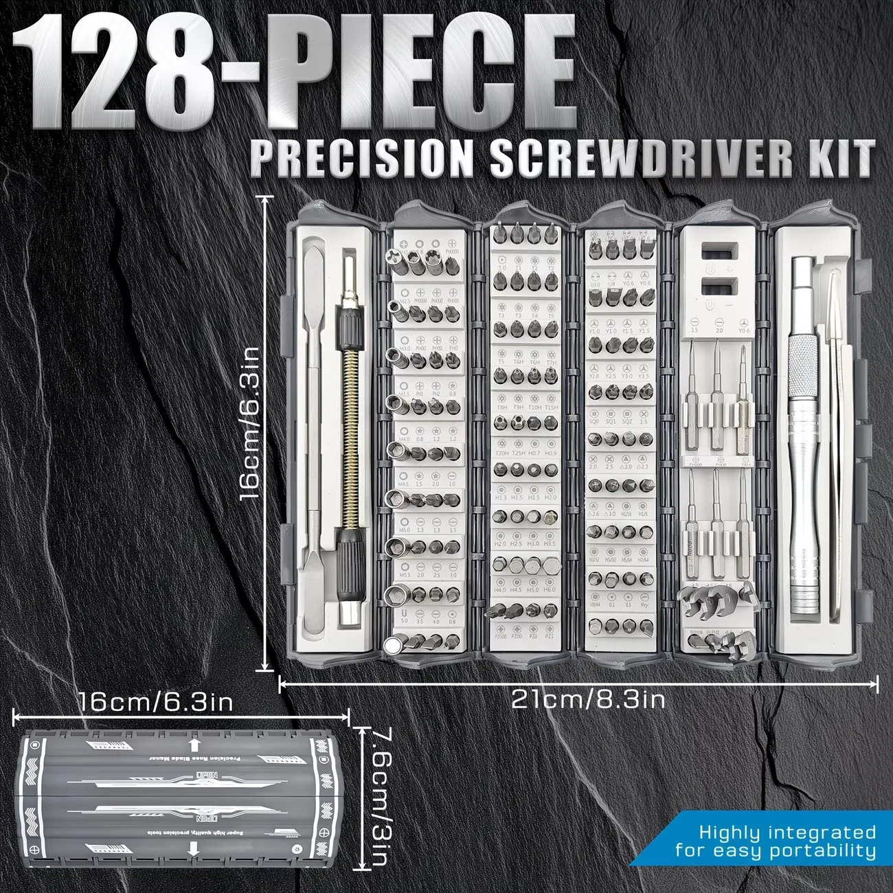 128-in-1 Precision Screwdriver Set, Dark Gray