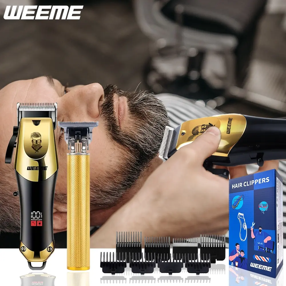 WEEME 4pcs Electric Hair Clipper Set, Cordless Clippers Set, Hair Clippers, Multifunctional Hair Trimmer, Beard Trimmer Kit, USB Rechargeable, T-Head Shaver, Nose Hair Trimmer, Perfect Gift for Men