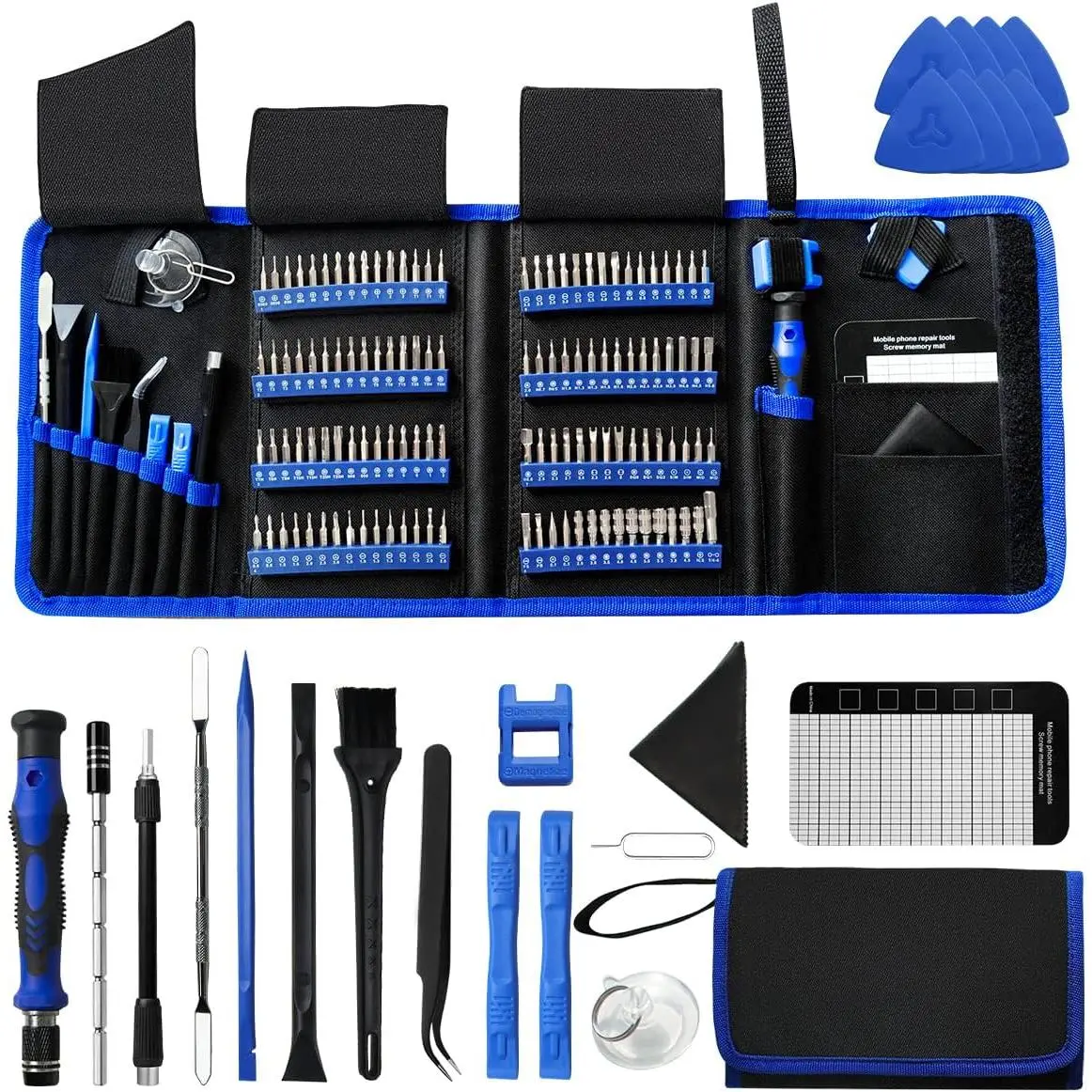 【Multifunctional Repair Kit】This computer tool kit comes with 120 precision bits and 22 practical tools, such as extension rod, magnetizer, ESD tweezers, spudgers, flexible shaft... Whether you're a professional or a amateur, this toolkit has what you need to repair all cell phone, computer, laptops, SSD, iPad, consoles, tablets, glasses, HVAC, sewing machine, etc.