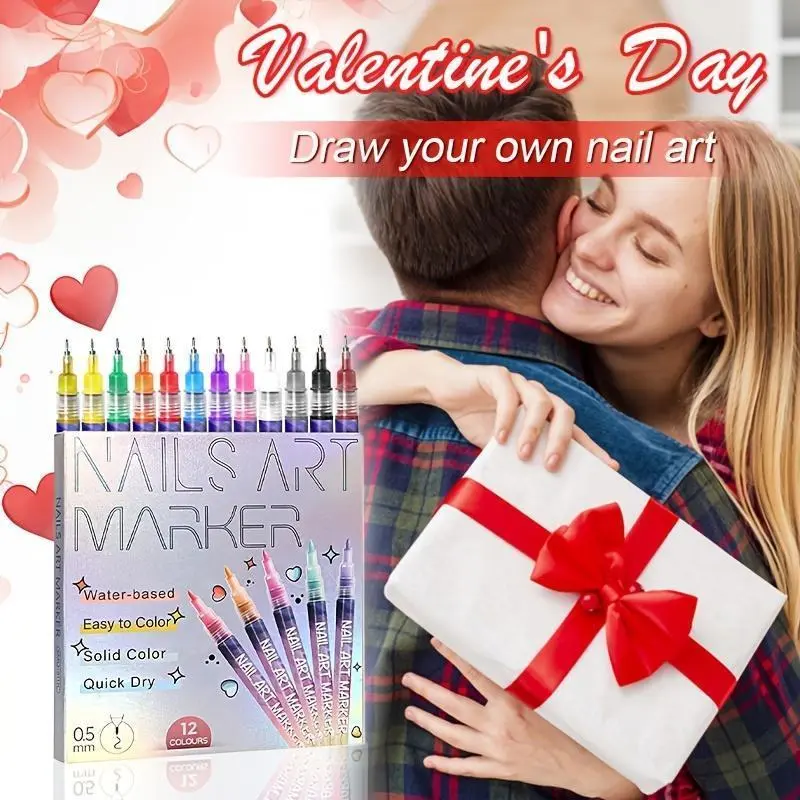 Suitable for professional nail Art pen set, 12-color acrylic paint pen, fast drying, precision 3D graffiti