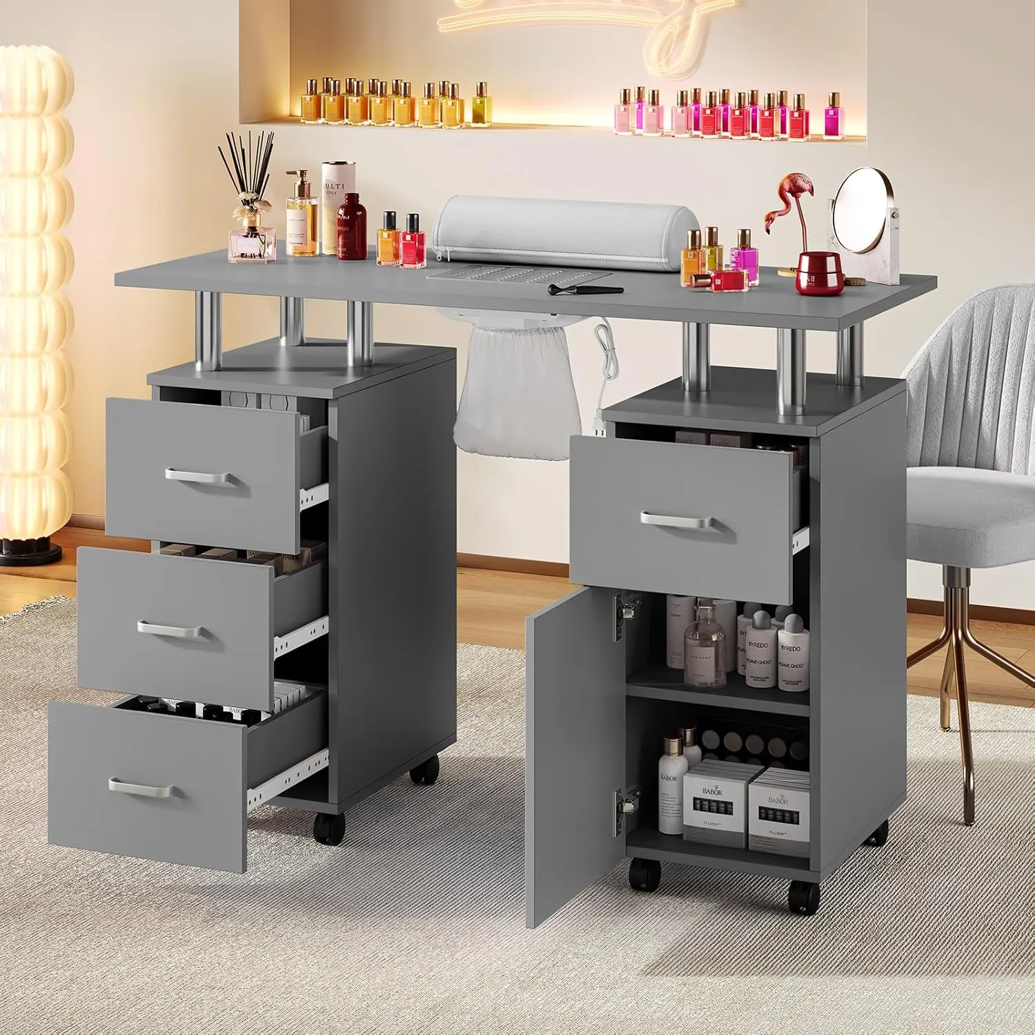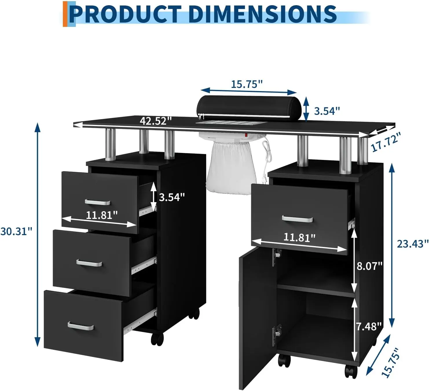 ·Optimized Storage Capacity – Featuring 4 drawers, 2 open compartments and a side cabinet, this nail desk organizes all professional tools efficiently.
