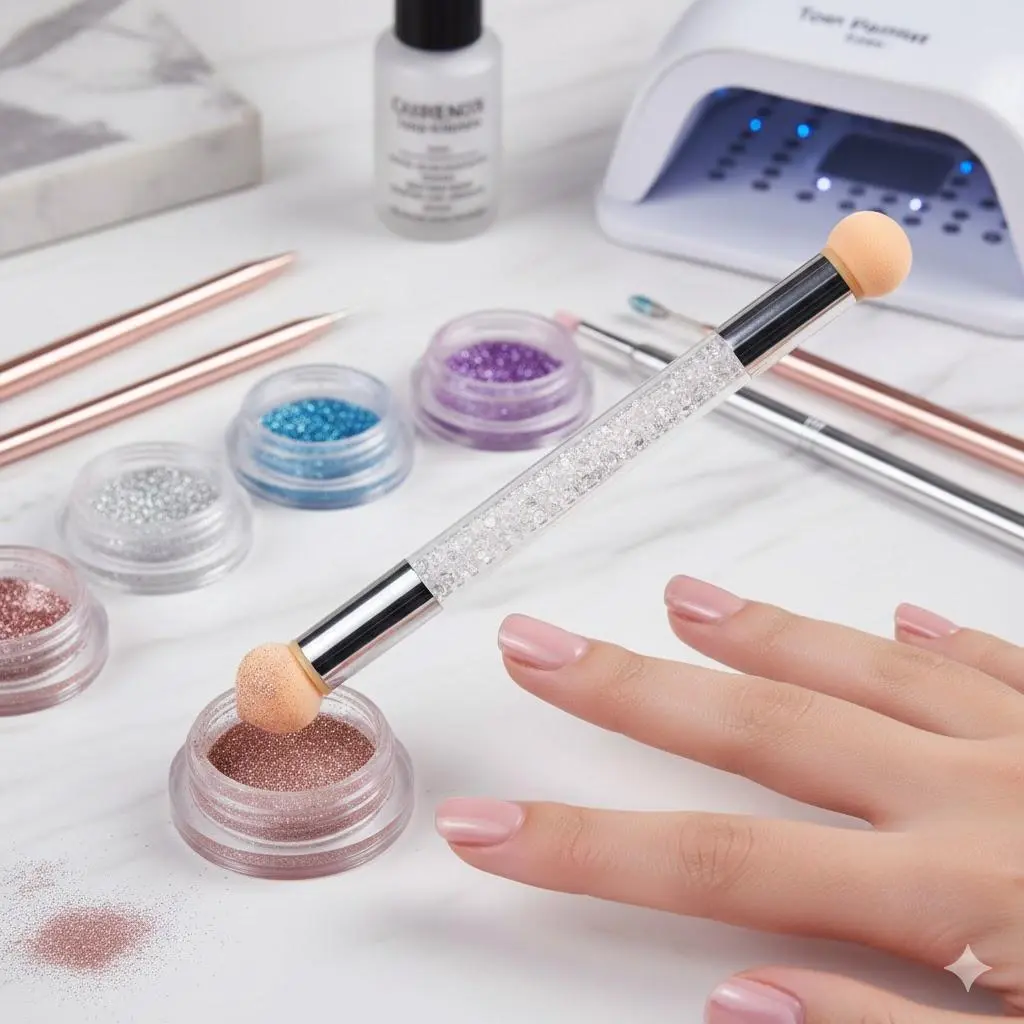 Professional Nail Sponge Brush Set - 4 Replaceable Heads, Multi-Functional Blending Tool, Skin-Friendly Latex for Smooth Gradients, Durable Design, Quick-Change System, Ideal for DIY Gradient Nails, Hypoallergenic, Portable Dust Cover