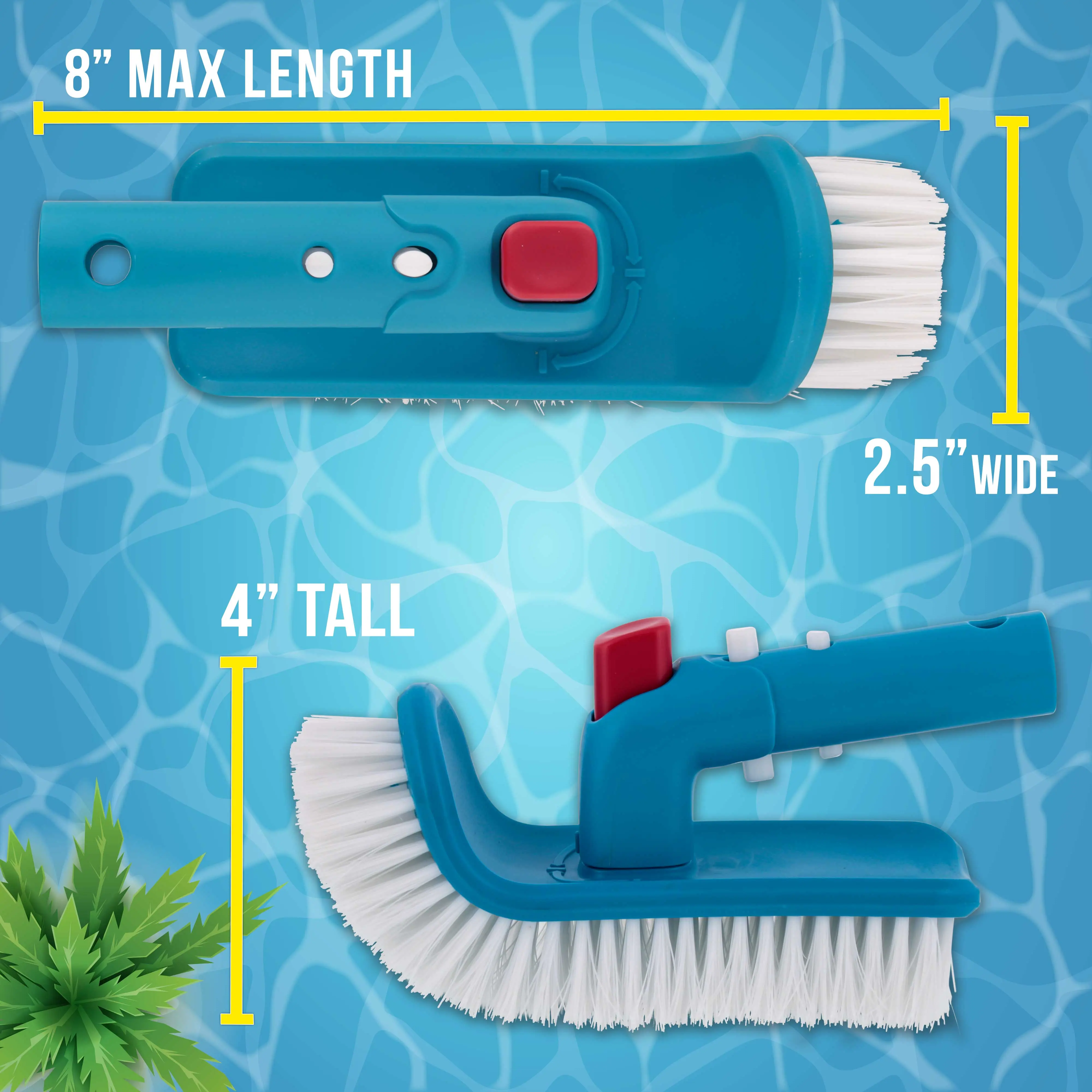 ·Enjoy a Clean Pool: An ideal heavy-duty pool step and corner cleaning brush to use for fast, easy, and efficient scrubbing and cleaning of hard-to-reach pool corners, steps, ladders, jets, and other problematic areas. Excellent for use inside swimming pools, spas, hot tubs, or as a kitchen or bathroom scrub brush. The brush fits standard size (1-1/4") telescopic pool vacuum poles. Pole not included.