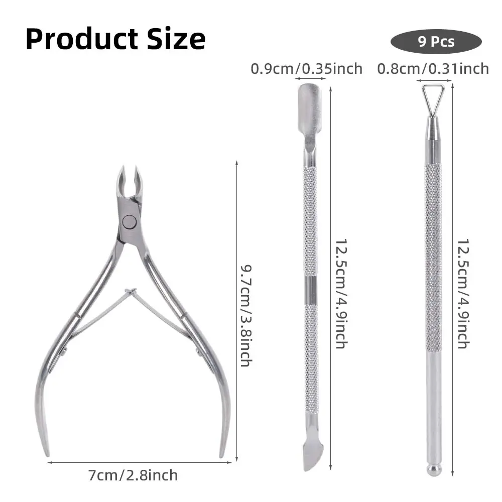 9pcs Professional Cuticle Trimmer, Multifunctional Dead Skin Clipper for Precise Trimming of Nail Edge Cuticles And Hangnails, Stainless Steel Nail Clippers - Remover with Sharp Blades, Dual Fork Design Is Sharp And Labor-Saving led