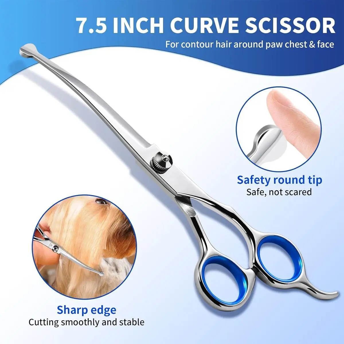 5 in 1 Pet Grooming Scissors Set, 5 Counts/set Stainless Steel Pet Hair Trimming Tool, Professional Pet Grooming Tool for Dogs & Cats, Grooming Supplies, Funny Haircut Gift, Grooming Products