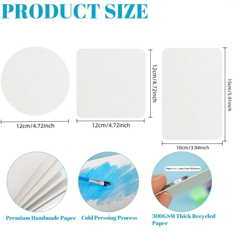 Professional Square/Round/Rectangle Watercolor Paper,300g Water Color Paper Postcard for Adults, Artists, Painting & Craft Paper, Watercolor Paper, Drawing Supplies, DIY Painting Supplies