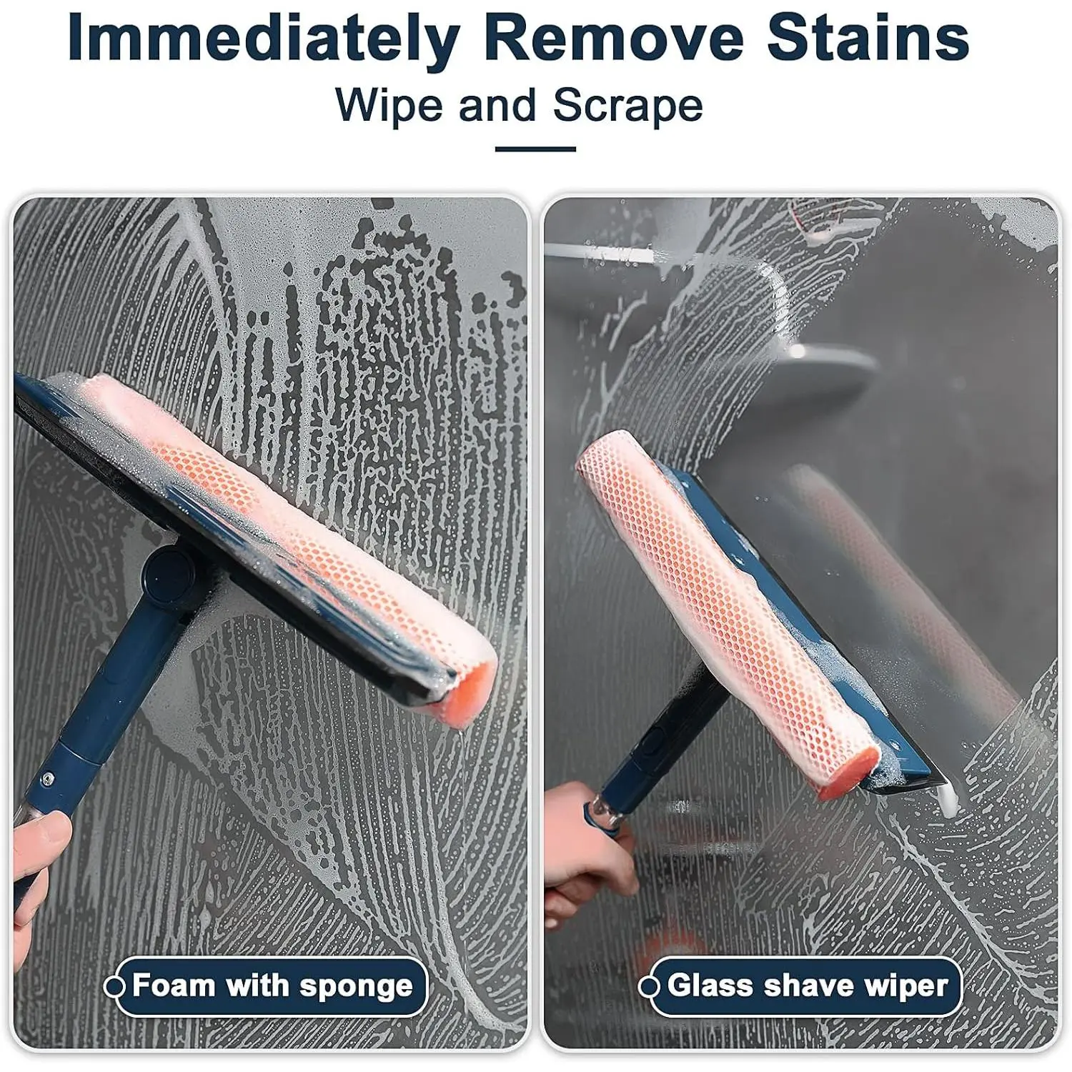 Professional Window Squeegee,2-in-1 Window Cleaner with 56" Long Stainless Steel Handle,Window Washing Kit, Glass Door Cleaner,Multi-Use Car Windshield Cleaning Tool for Gas Station, Glass,Shower