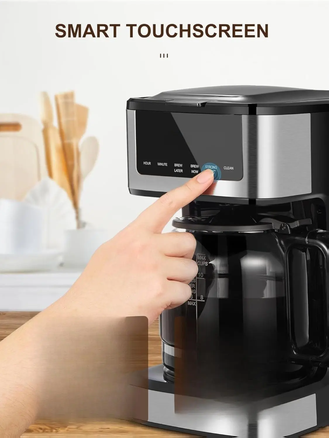 Programmable Drip Coffee Maker 12 Cup with Iced Coffee Function Touch Screen Regular & Strong Brew Auto Shut-Off, Home Office Use, Gift for Christmas
