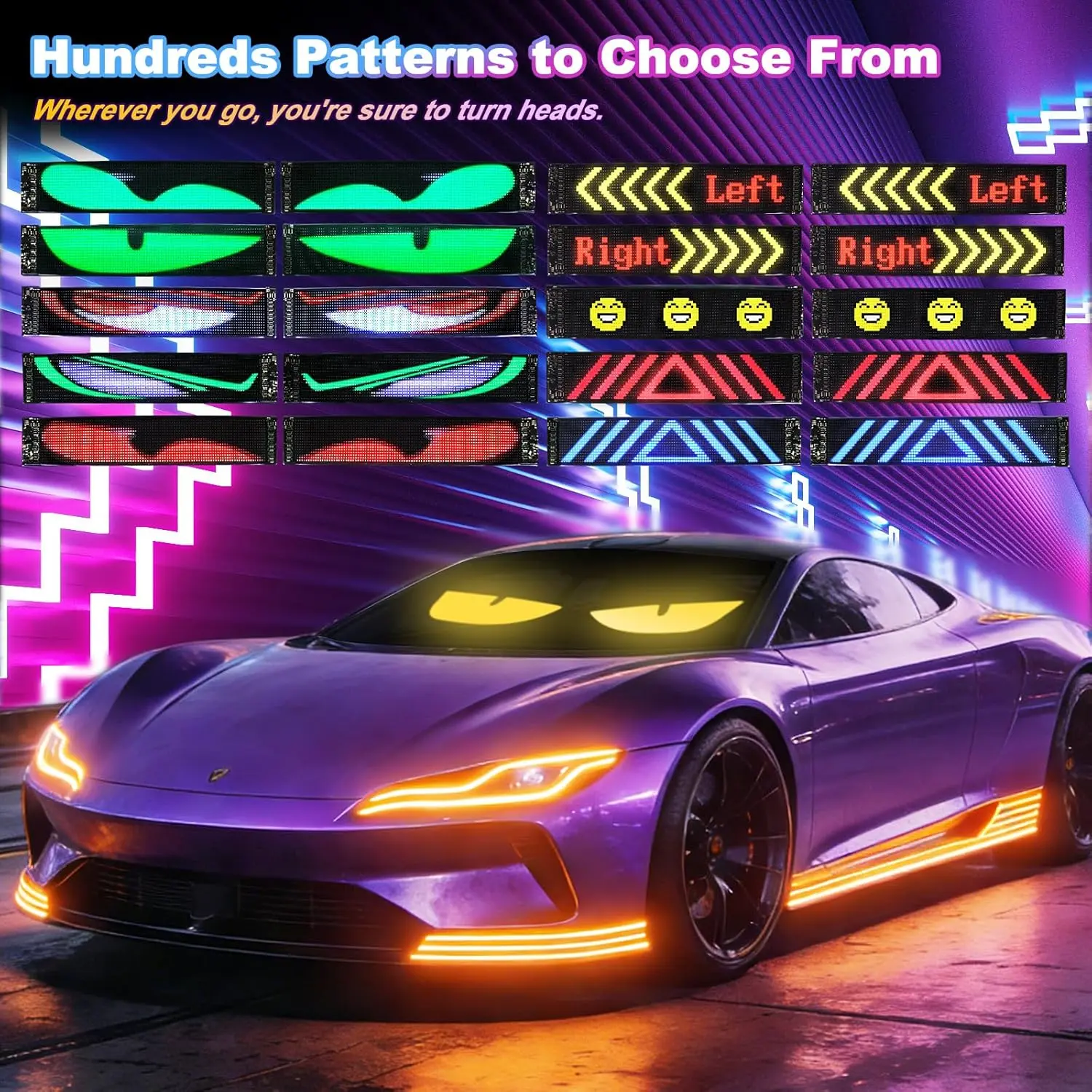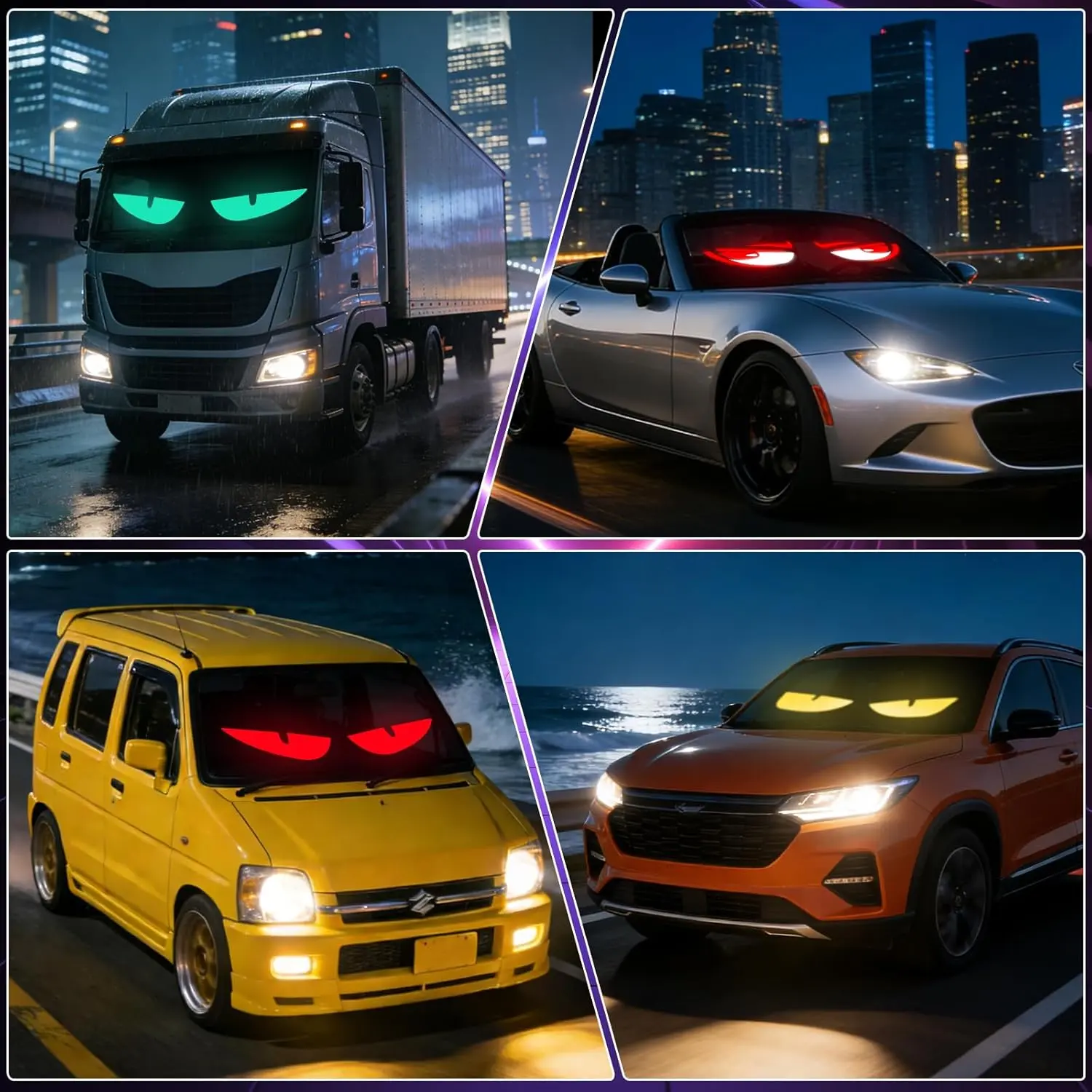 ✨ 2PCS 5800 Lux Devil Eyes LED Light Strips for cars, trucks, and SUVs. These 23.6"x4.73" strips offer high brightness and customizable windshield decoration. Perfect for SUVs, sedans, and mini cars. USB-powered for convenient charging. IP68 waterproof, ensuring durability. Manage via app control for easy customization.
