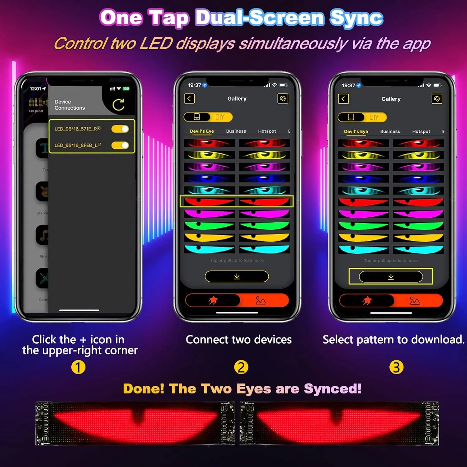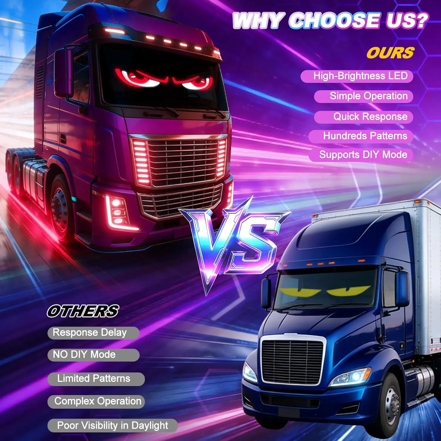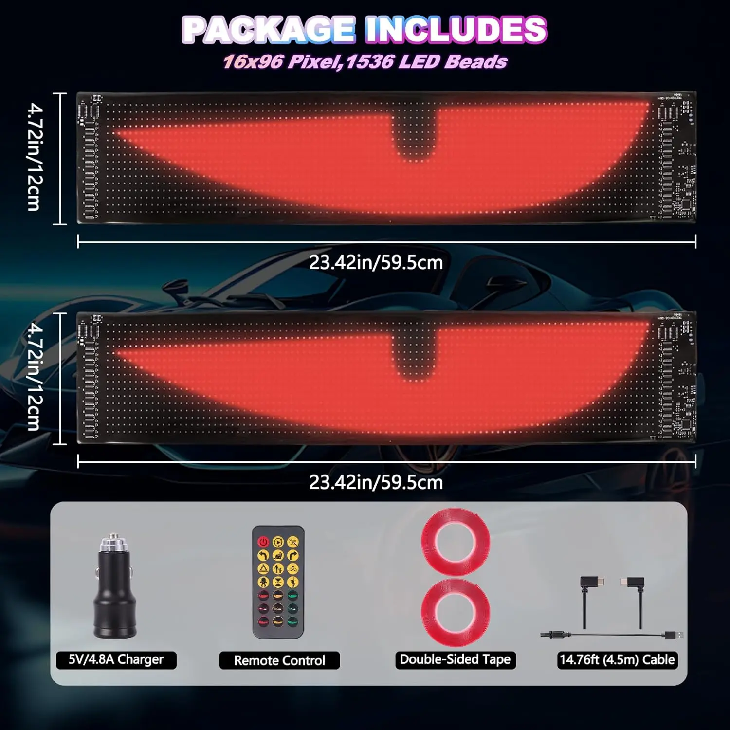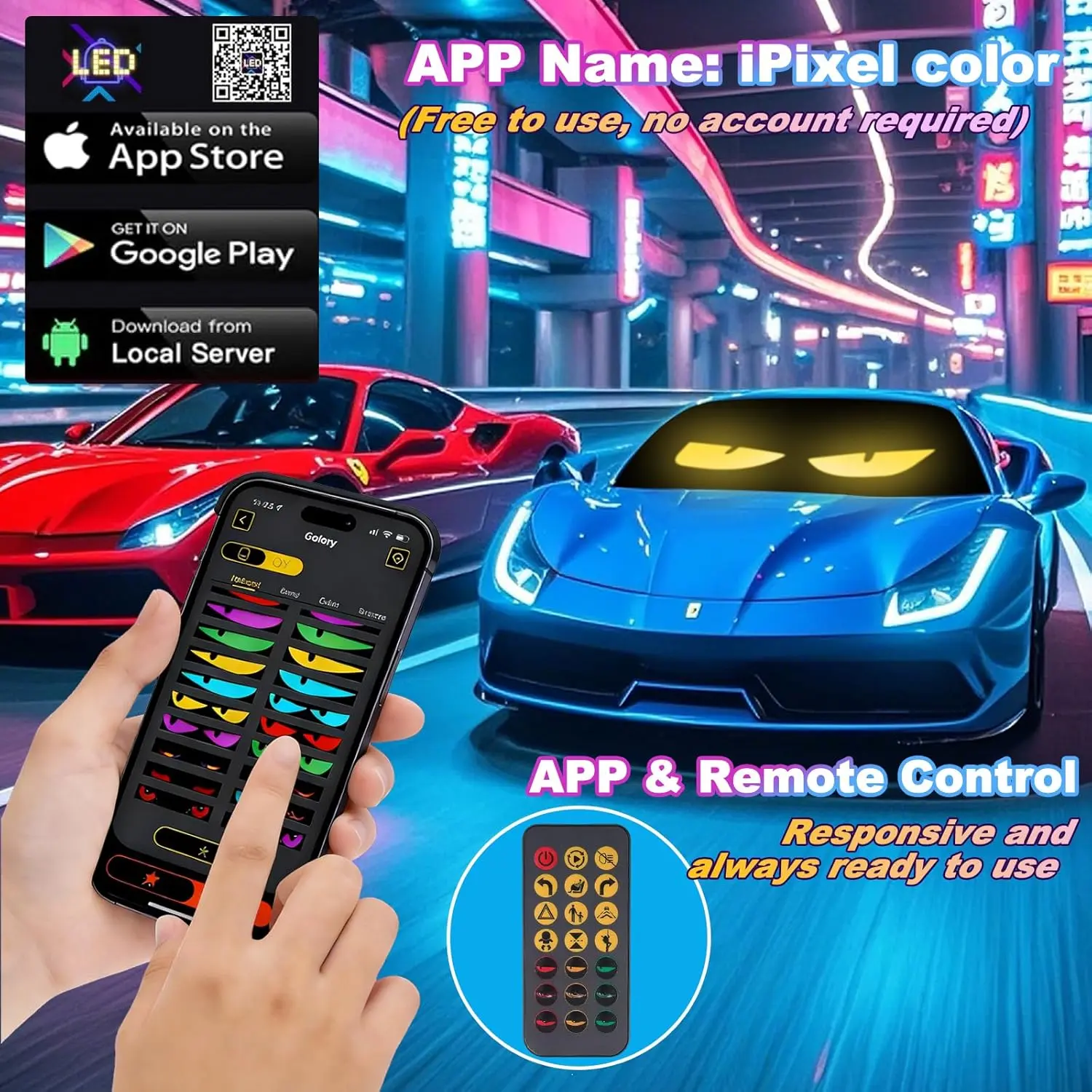 2PCS 5800 Lux High-Brightness Devil Eyes LED Light Strips for Cars/Trucks/SUVs - 23.6"x4.73" Customizable Windshield Decoration with App Control, IP68 Waterproof, USB-Powered