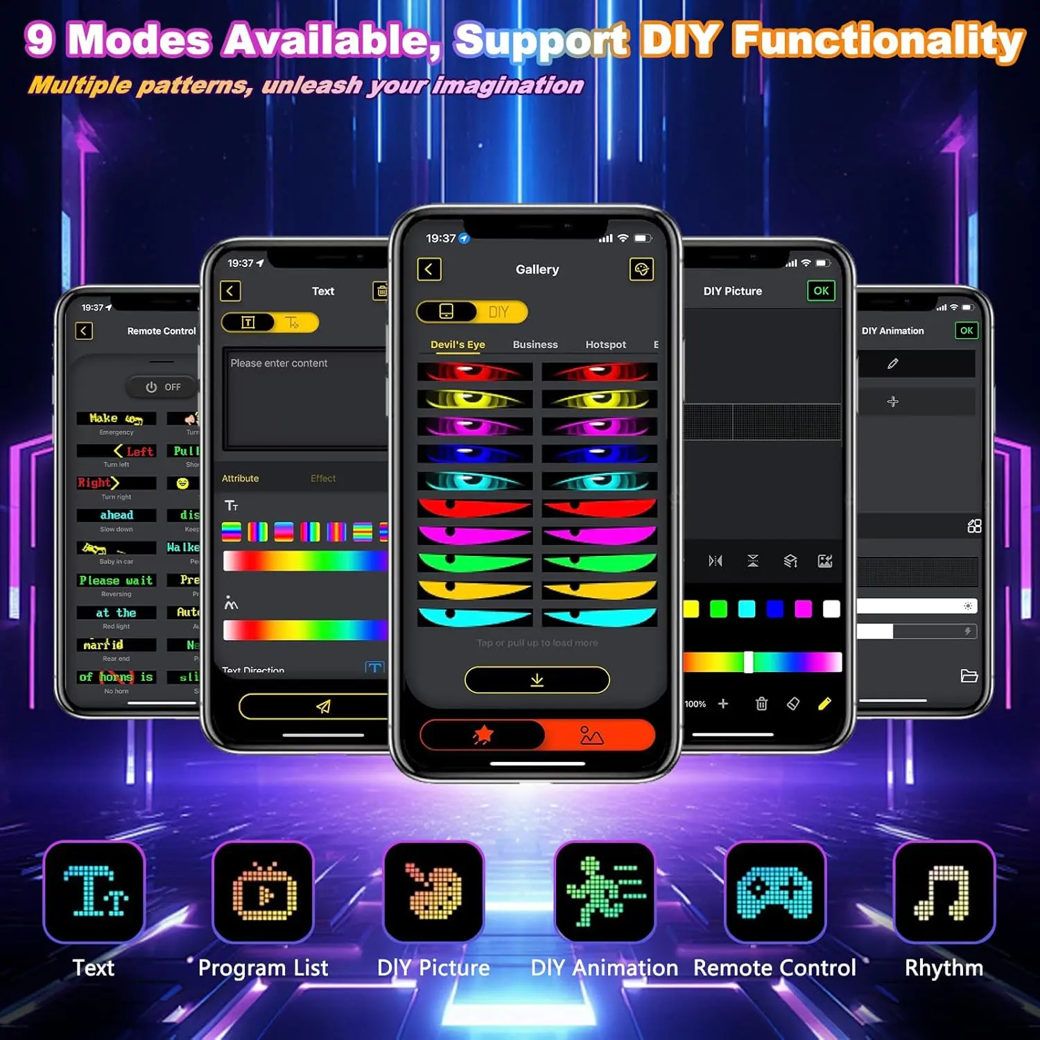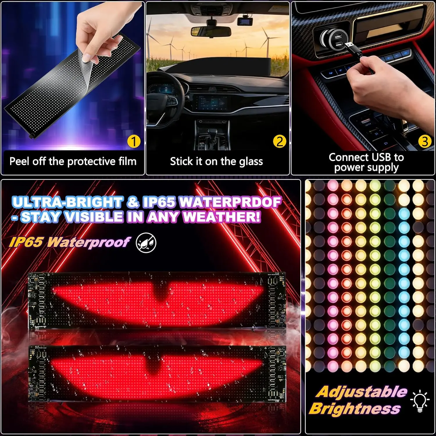 Update text and animations from your smartphone. Ideal for various car types. The soft and strong adhesion guarantees the sign stays in place, ensuring visibility and style. Perfect for personalizing your vehicle's appearance.