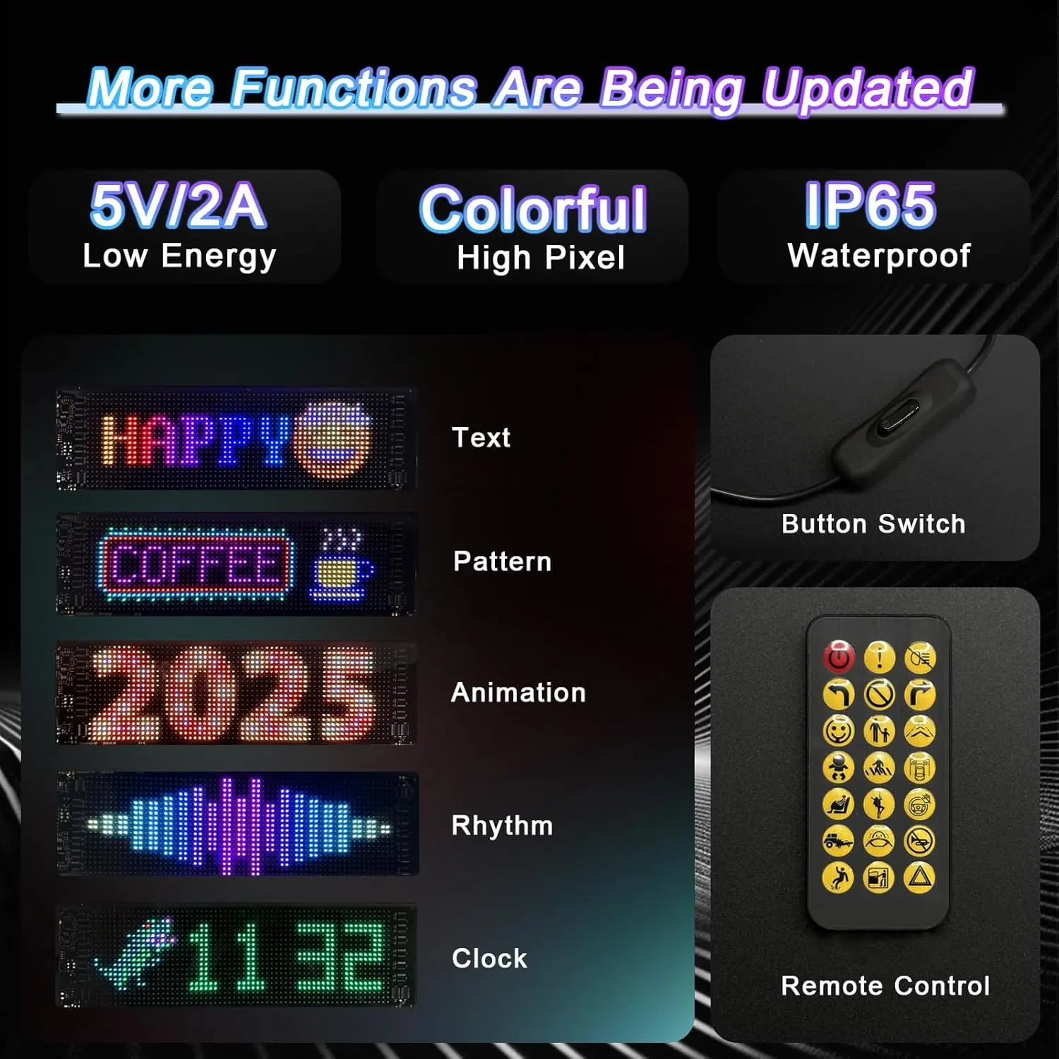APP Control: Turn on your cell phone's and connect the LED matrix via APP, you can easily edit the LED screen content at any time. Use interesting built-in modes according to your needs and scenes, including digital clock, music rhythm and other rich functions for you to explore