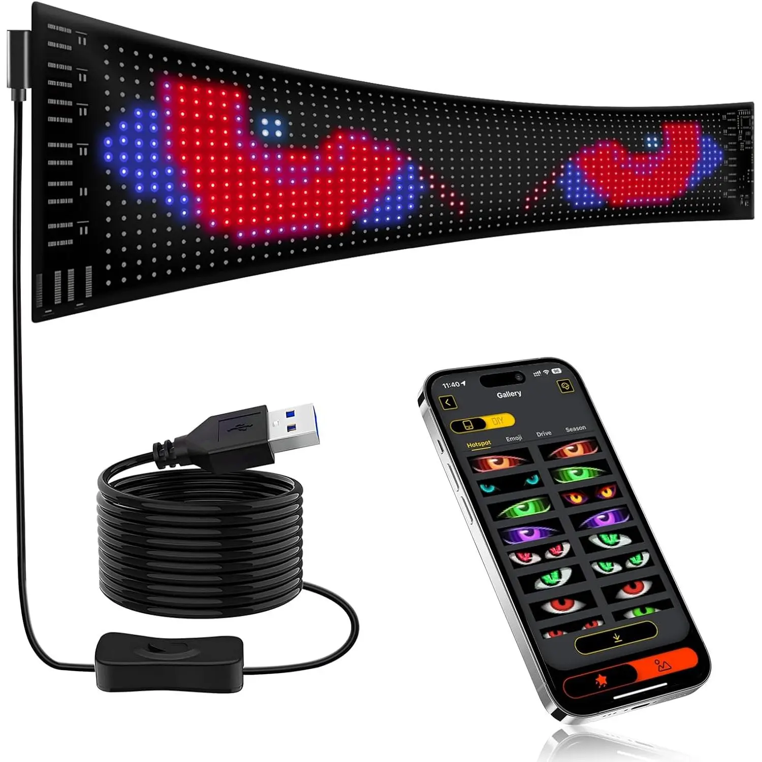 Eye-Catching & Colorful: The newly upgraded 15"x4" flexible LED sign has 1024 LEDs with over 16 million colors to choose from.The LED matrix panel produces more and clear images that are vibrant and eye-catching, easily captivating and conspicuous, even in weather with a blurred view