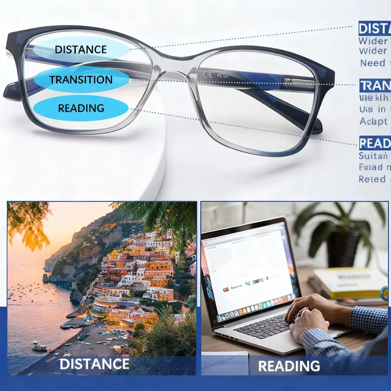 ·ANTI-BLUE LIGHT PROGRESSIVE MULTIFOCAL LENSES - See far and near without changing glasses, filters out high-energy blue light from digital devices and other light sources to reduce eye fatigue