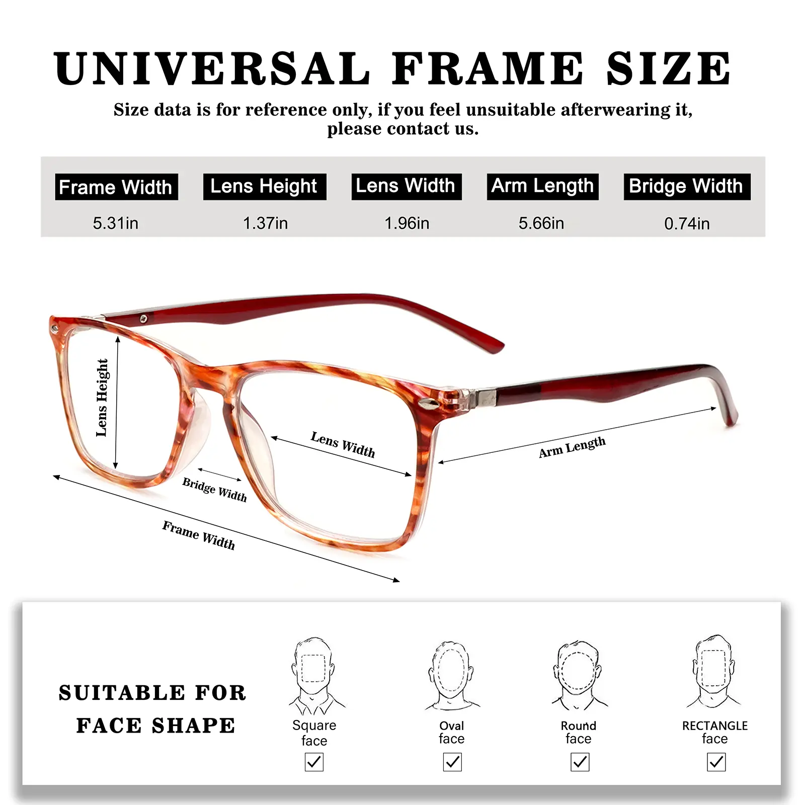 Note: Before selecting the correct magnification, it is recommended to consult an optometrist for accurate magnification recommendations. Otherwise, the multiple is too strong or too weak, will cause blurred vision or dizziness. Please choose carefully. After the age of 40, vision changes from year to year and requires the attention of the buyer. For first-time multifocal reading glasses wearers, it can take one to three weeks to get used to.