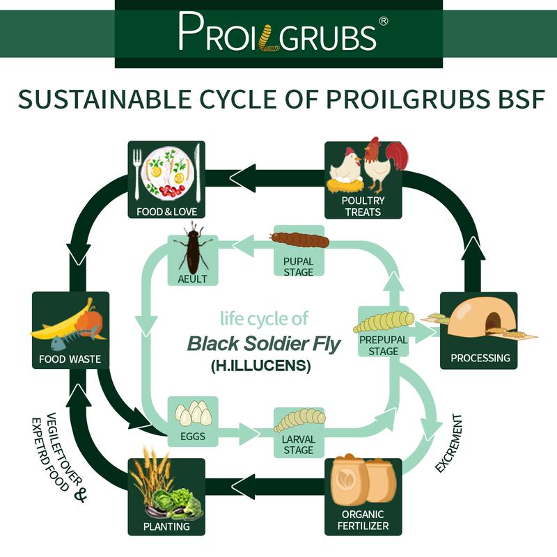 ·Black Soldier Fly larvae are raised by food wast and,the the residue of soldier worms will be a great organic fertilizer which also can be planting.Black Soldier Fly larvae are harvested and be dried through traceable microwave oven, then they are inspected by QC and ready for sales.