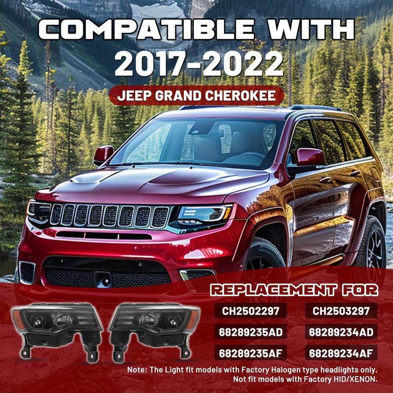·Compatibility: Pair projector headlight compatible with 2017-2022 Jeep Grand Cherokee. Replacement for CH2502297 CH2503297 68289235AD 68289234AD 68289235AF 68289234AF. Note: The Light fit models with Factory Halogen type headlights only. Not fit models with Factory HID/XENON
