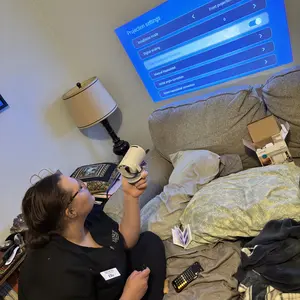 Really good projector for the price, would definitely recommend🔥🔥🔥, sound and visual quality is really good!!!! Definitely worth the price!!!!