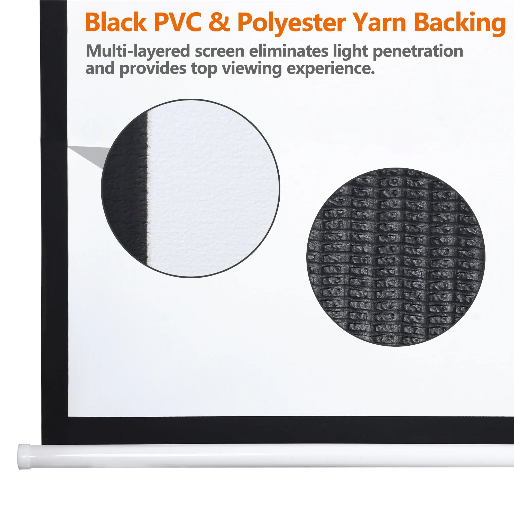【High Quality Material】This projection screen is made of PVC and polyester silk fabric, which can be smoother and flatter on its surface, and uses a metal shell to prevent damage and deformation in transit. Please Note: This is a projection screen, the projector is not included.