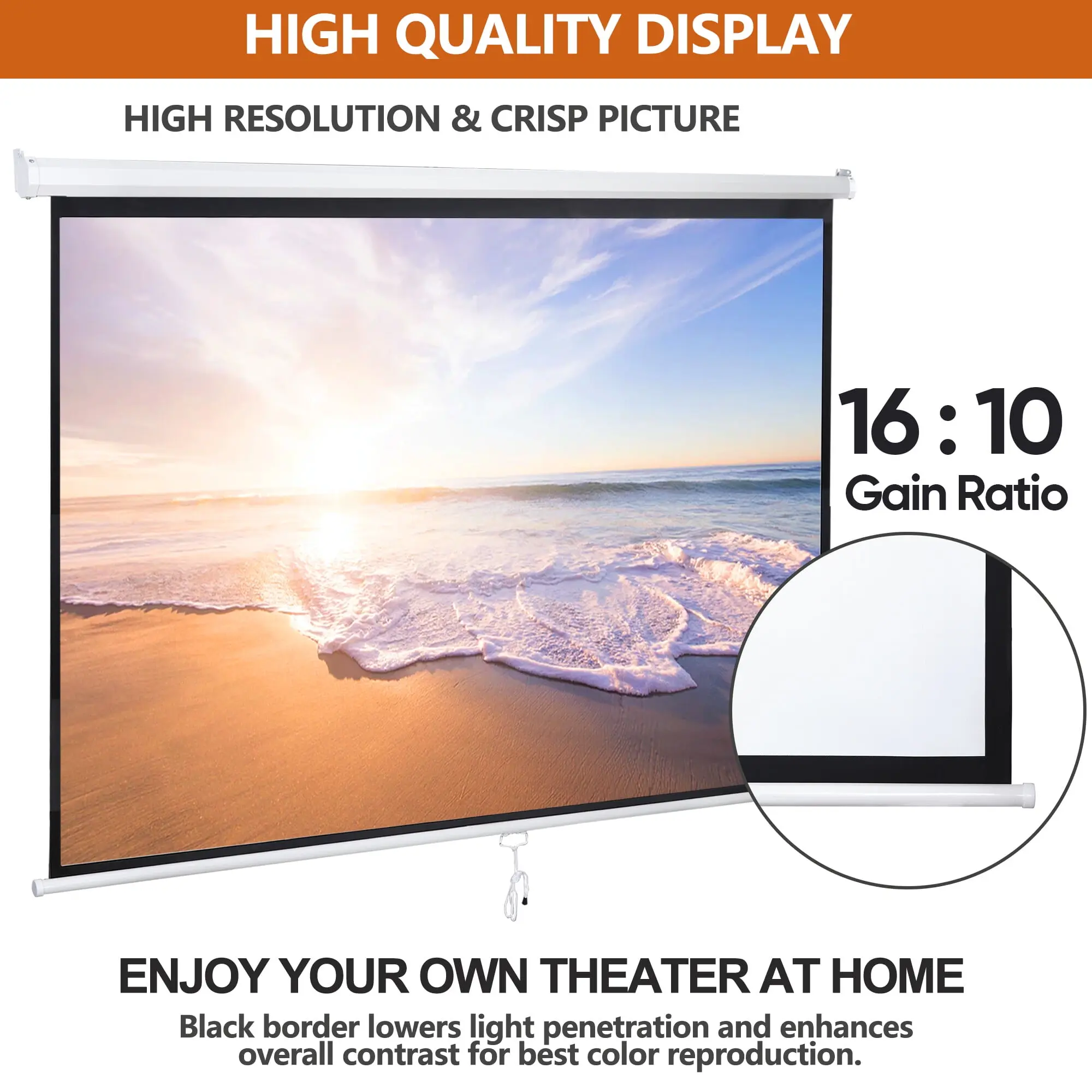【Wide Application】Projector screen perfect for home theater, schools, offices, weddings, church, education, conference room presentation, public display, outdoor movie. Also can be used for PowerPoint presentations and other displays.Specifications: