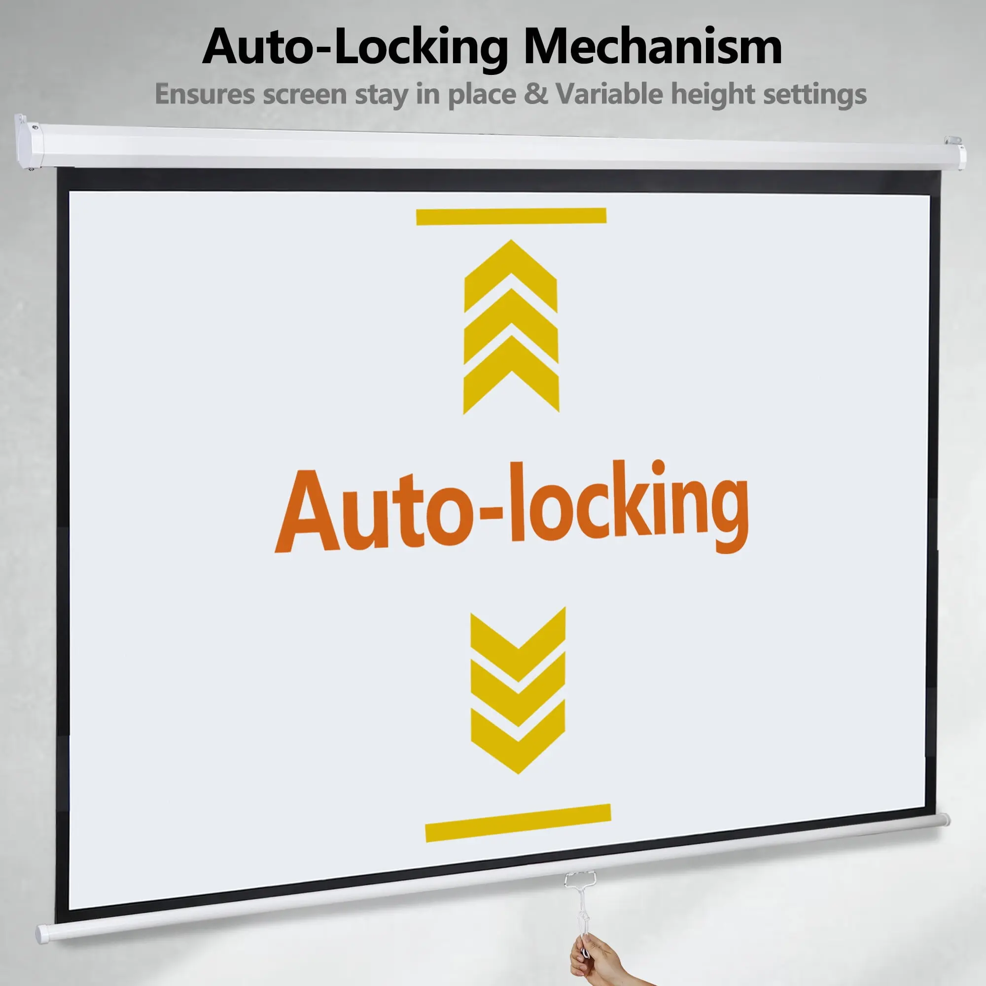 【Easy to Set UP】The adjustable projection Screen can be Fastened easily with hooks, ropes, bracket, nails, double side tape on the wall/mount. Features a 2-inch interval auto-lock mechanism that allow for various height settings and a screen lanyard for easy pull down.